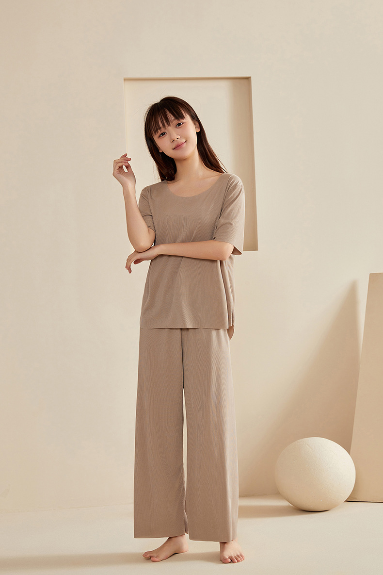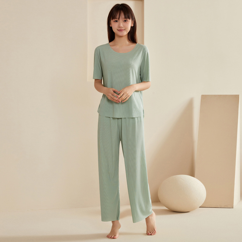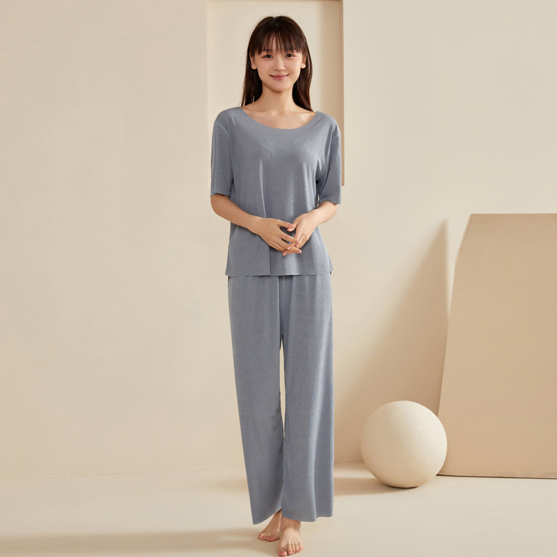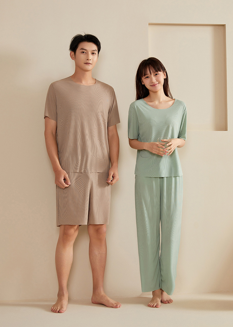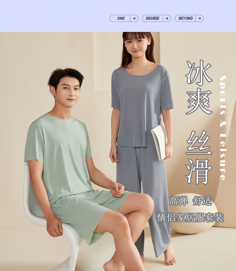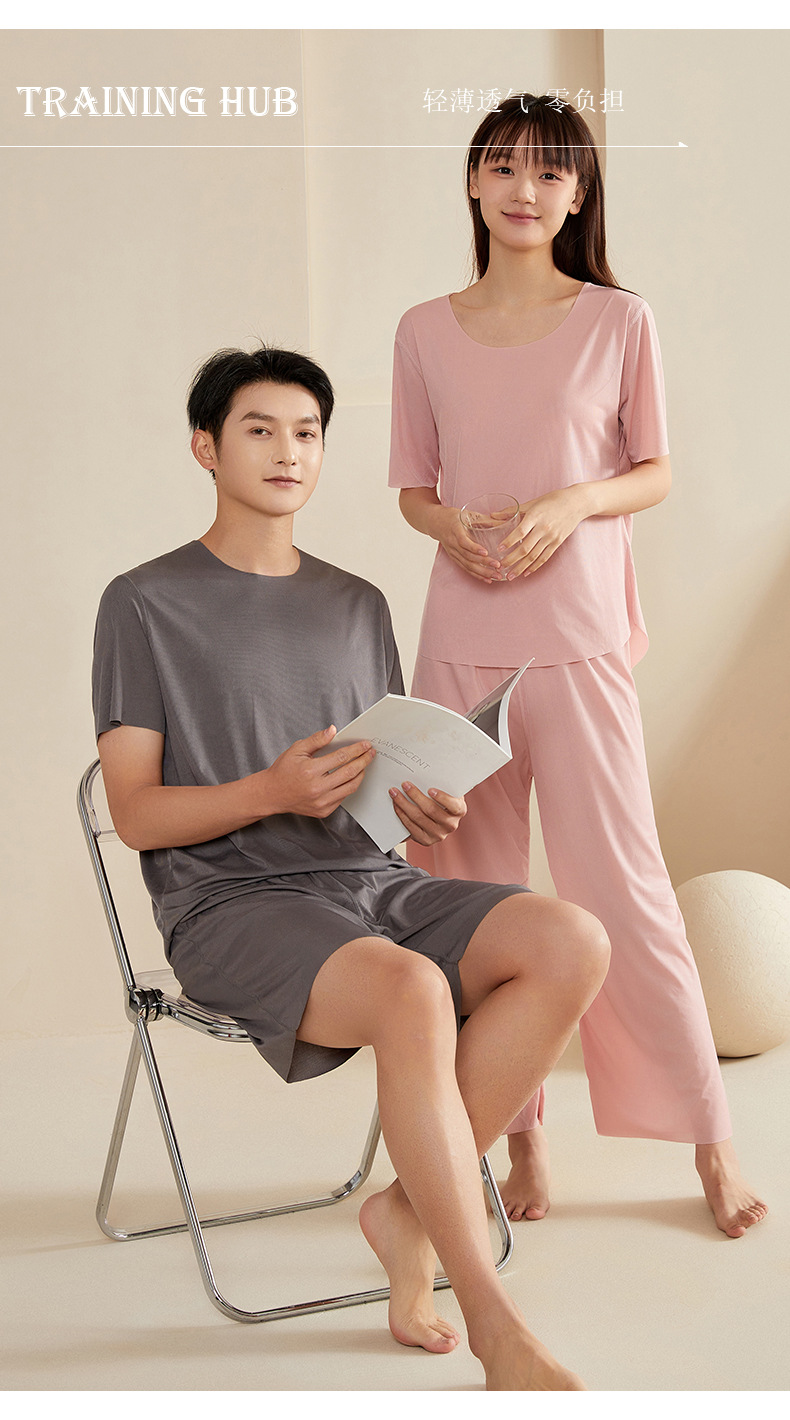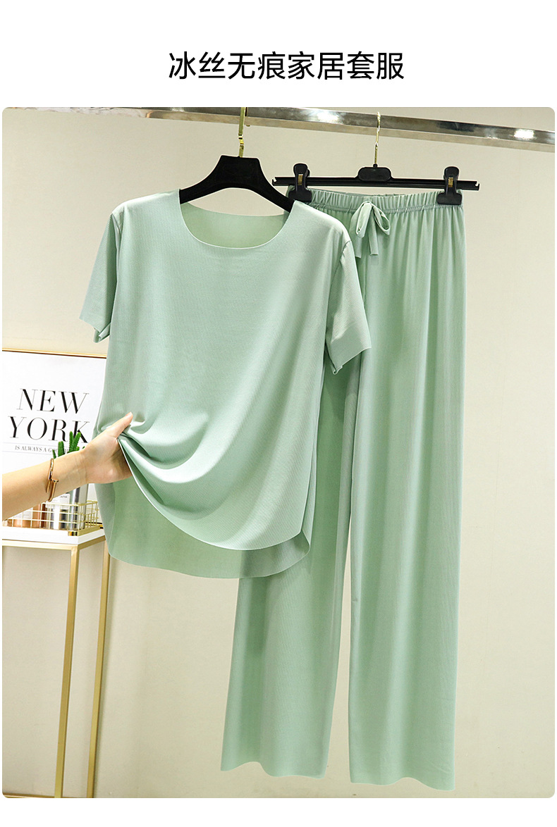 TikTok 빠른 손 세트 여자의 인터넷 연예인 느슨한 잠옷 게으른 얼음 실크 커플의 얼음 시원한 여름 투피스 캐주얼 가정 의류스토어 가기