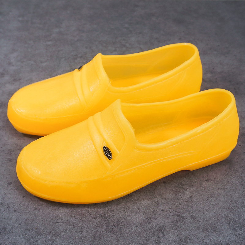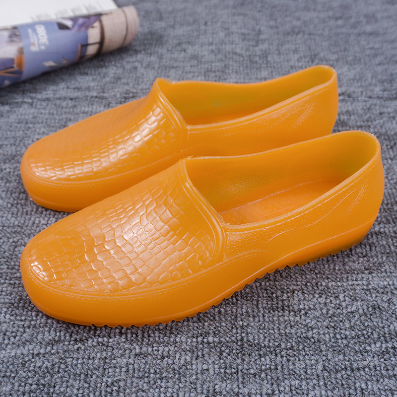 건설 현장용 남성용 고무신, 주방 작업용 노란색 고무신, 방수 미끄럼 방지 앞코가 덮인 레인슈즈, PVC 로우컷 안전화