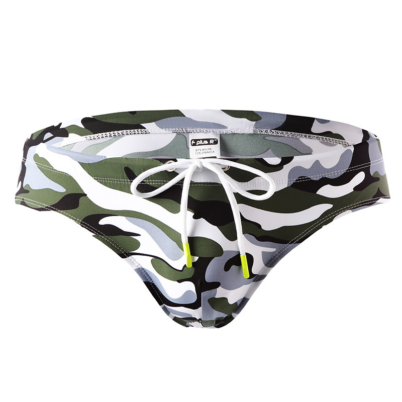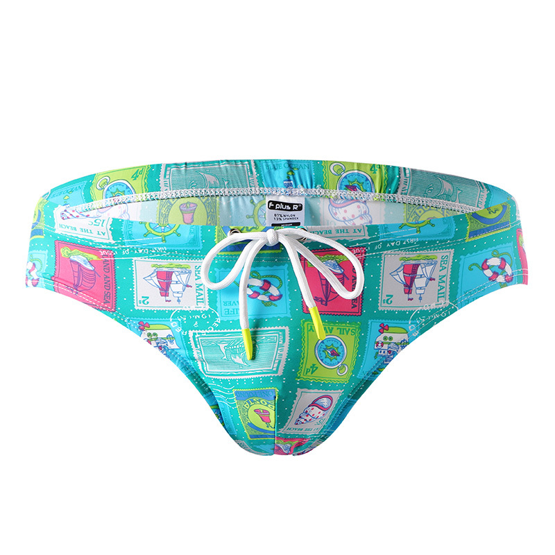 남성용 나일론 인쇄 수영 삼각형 컵 레이스 업 수영 트렁크 FR033