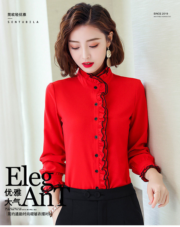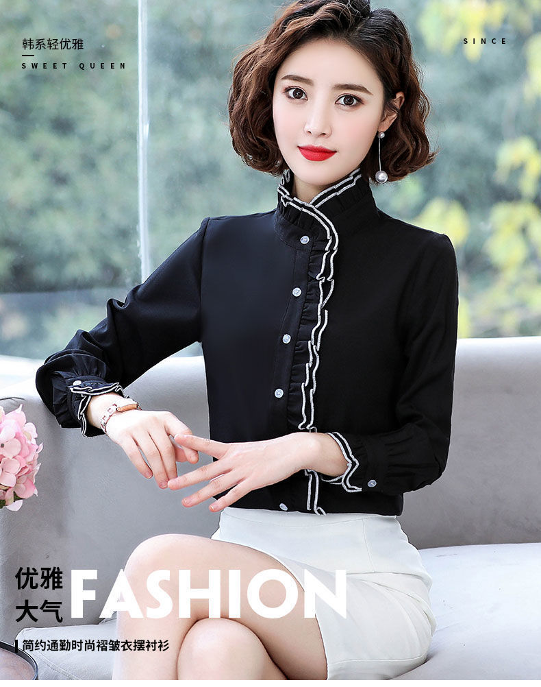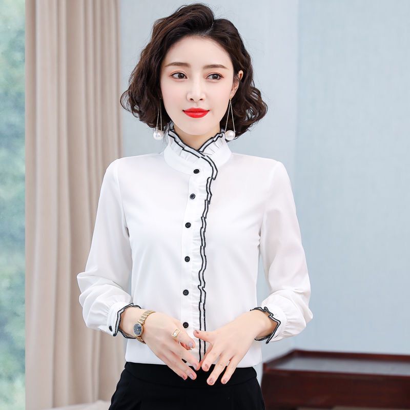 여성용 봄 가을 셔츠 한국 스타일 러쉬드 엣지 레이어드 셔츠 여성복 2024 신상 트렌디 여성 상의 출근용 긴팔스토어 가기