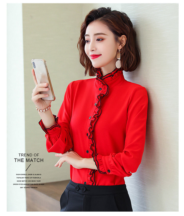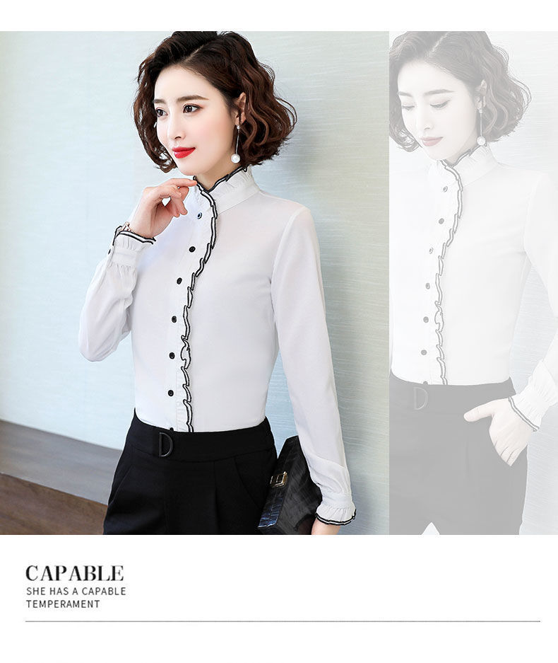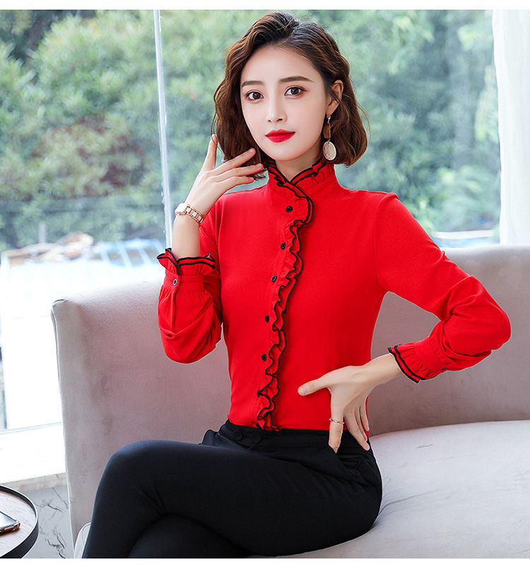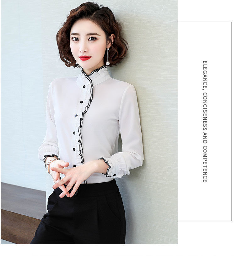 여성용 봄 가을 셔츠 한국 스타일 러쉬드 엣지 레이어드 셔츠 여성복 2024 신상 트렌디 여성 상의 출근용 긴팔