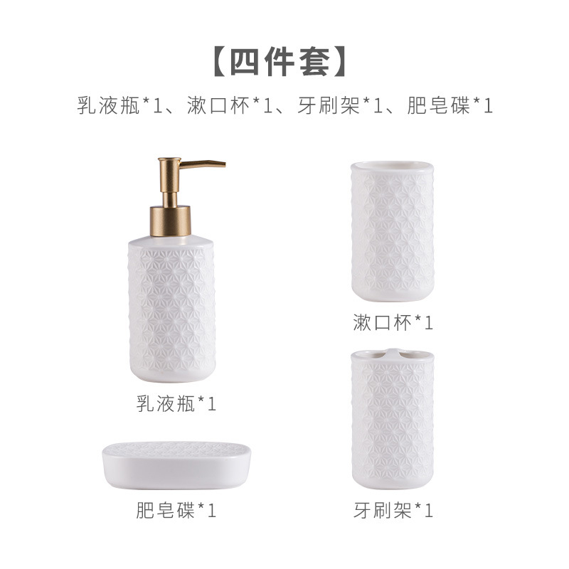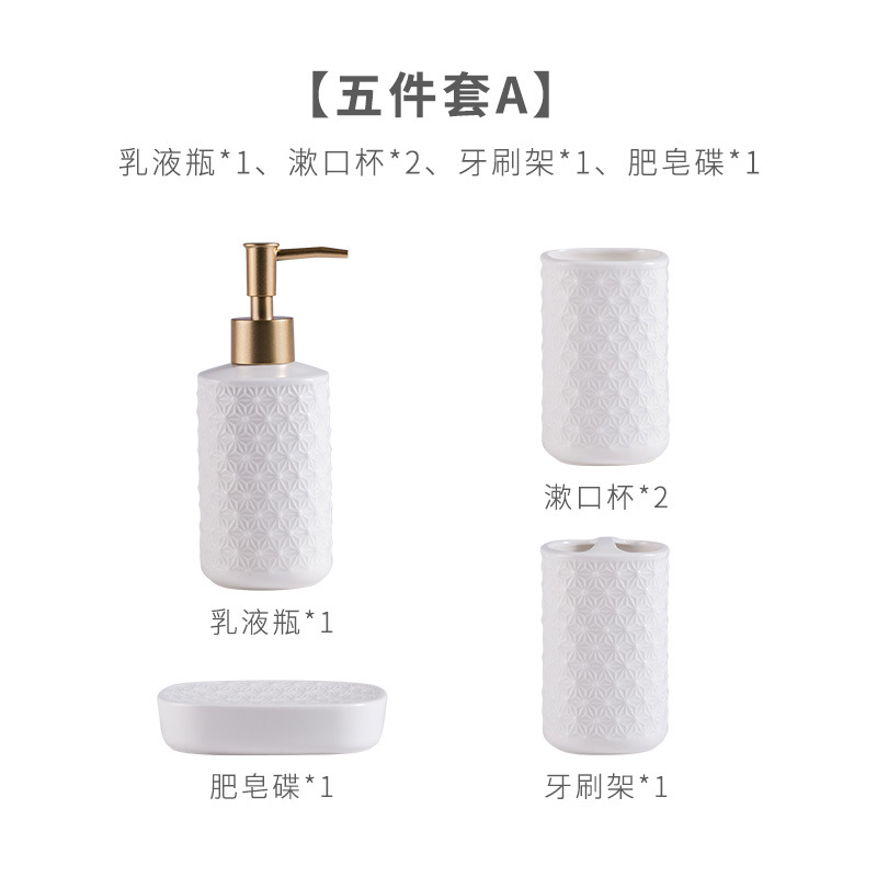 심플한 세라믹 욕실용품 5종 세트, 욕실용품 세트, 욕실용품, 양치컵, 칫솔컵, 장식품, 엠보싱