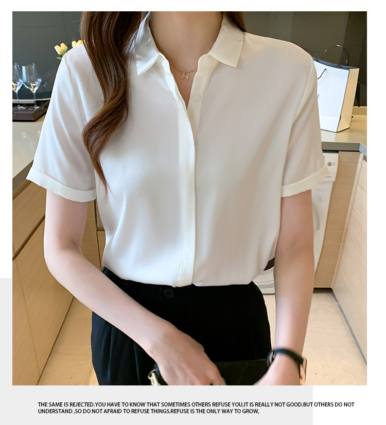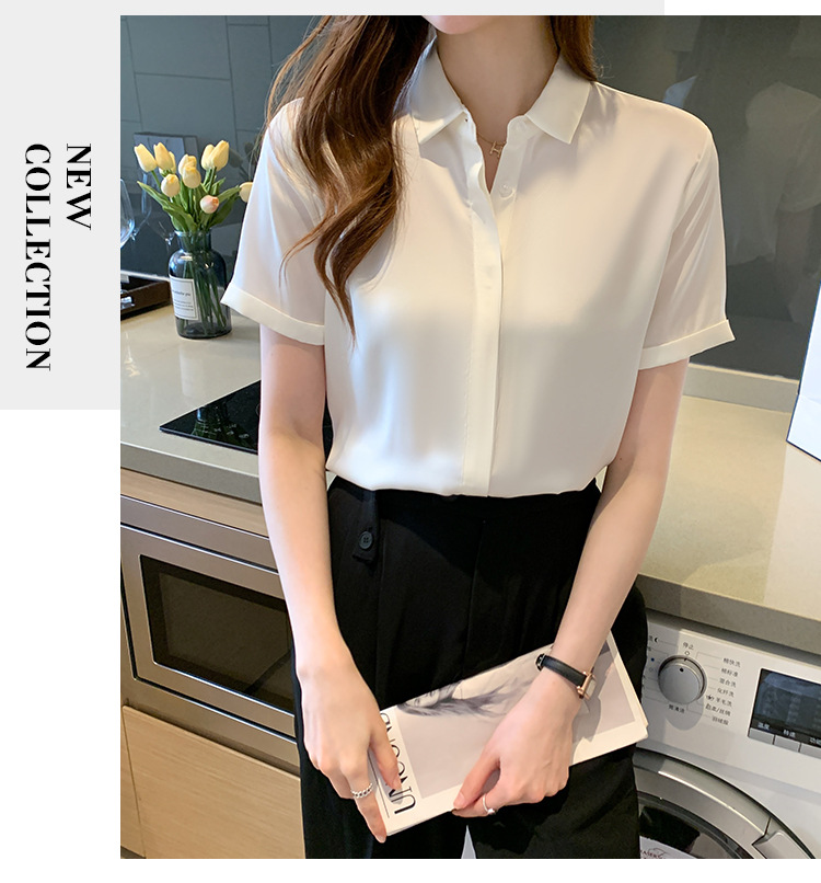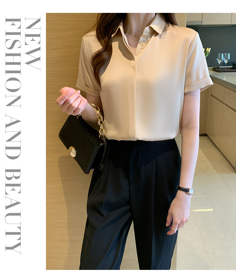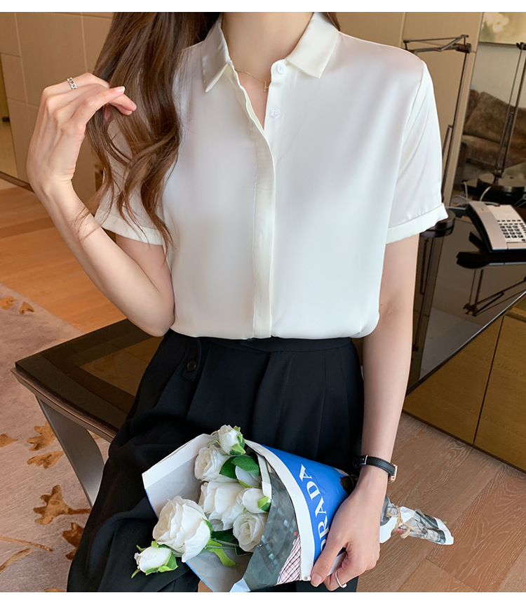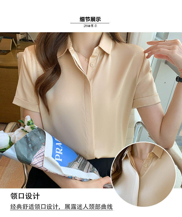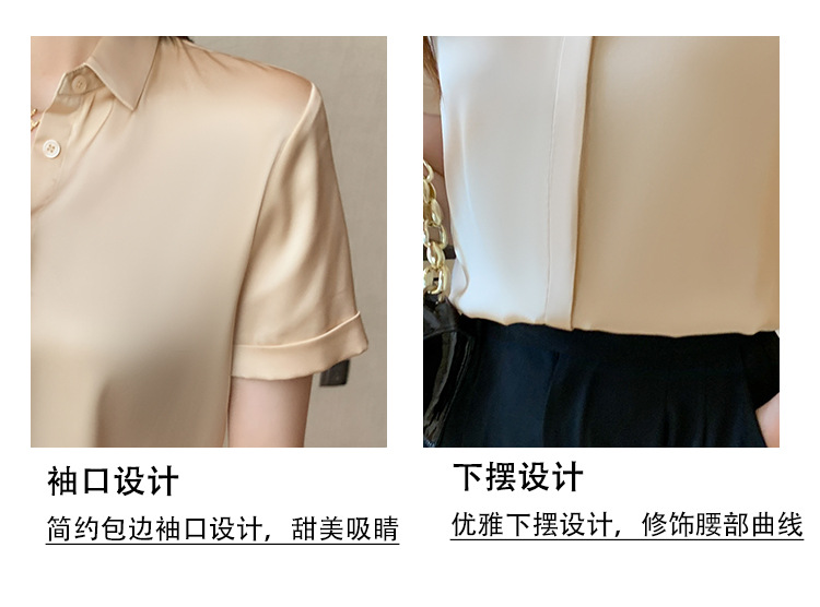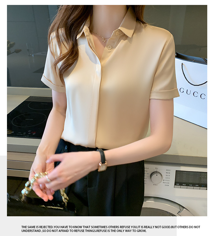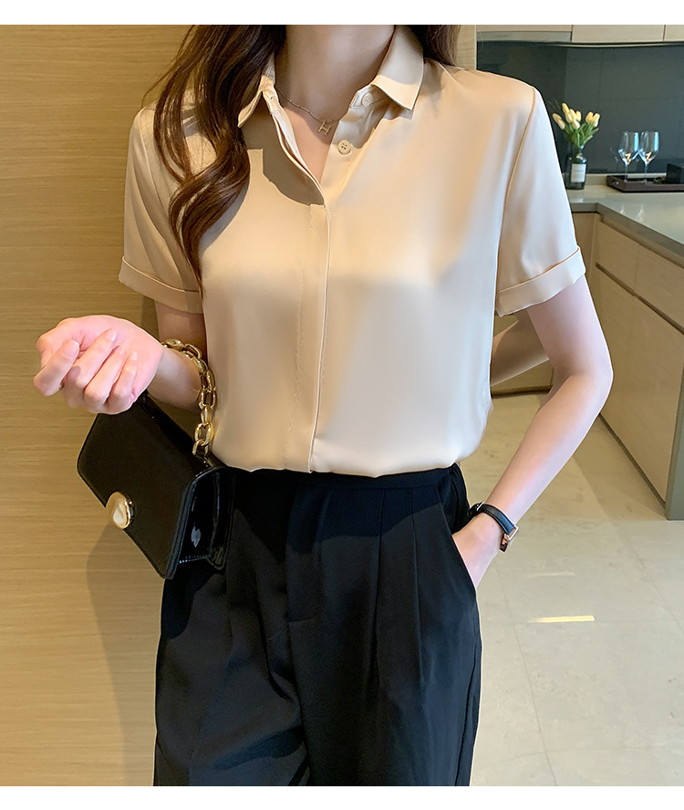 헤비 새틴 반팔 셔츠 여성용 2023 여름 새로운 디자인 센스 라이트 성숙한 전문 셔츠 쉬폰 여성 탑스토어 가기