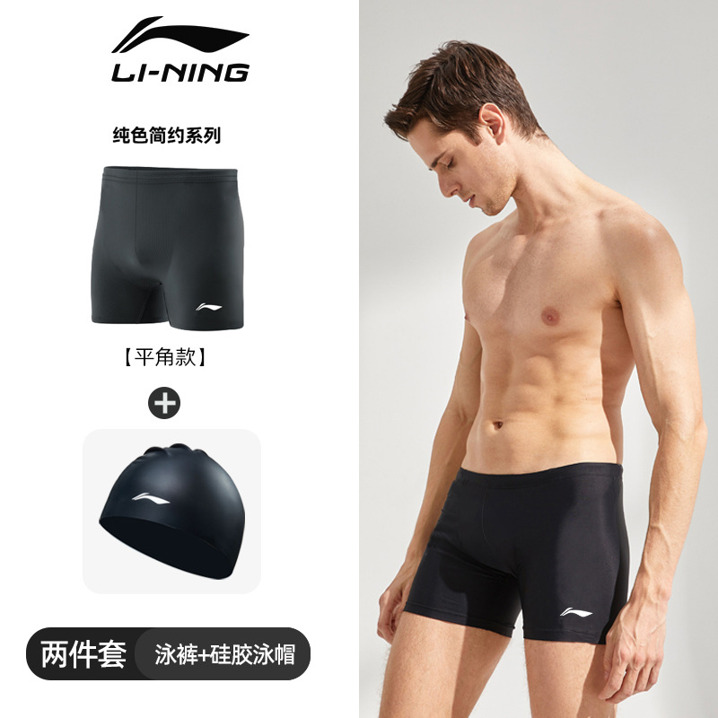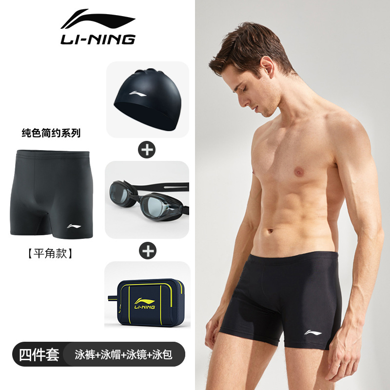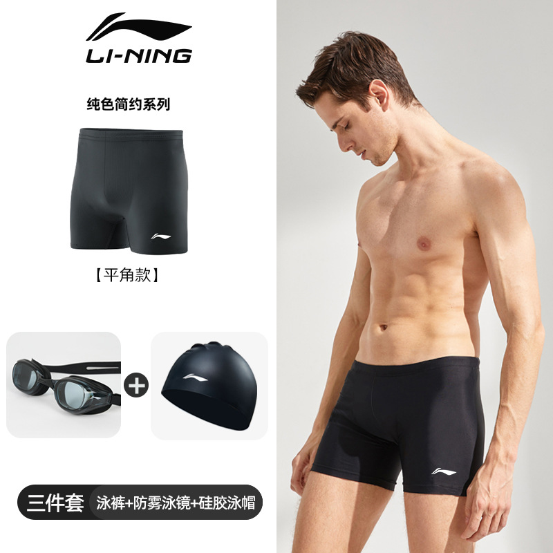 Li Ning 수영 고글 남자 수영 모자 복서 팬티 온천 통기성 속건 수영복 유행 수영 트렁크 3 피스 세트 장비스토어 가기