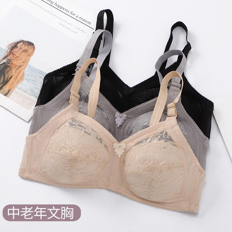 엄마 속옷 더블 브레스트 얇은 레이스 브라 편안하고 통기성이 뛰어난 푸쉬업 중년 및 노년층 노와이어 브라 제조업체스토어 가기