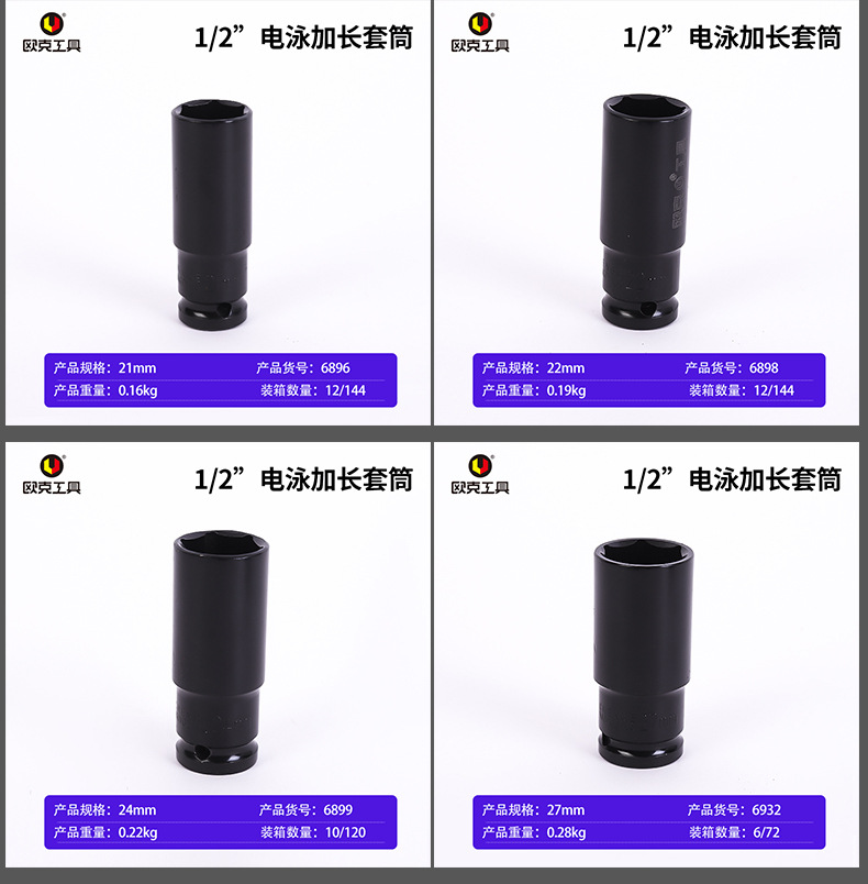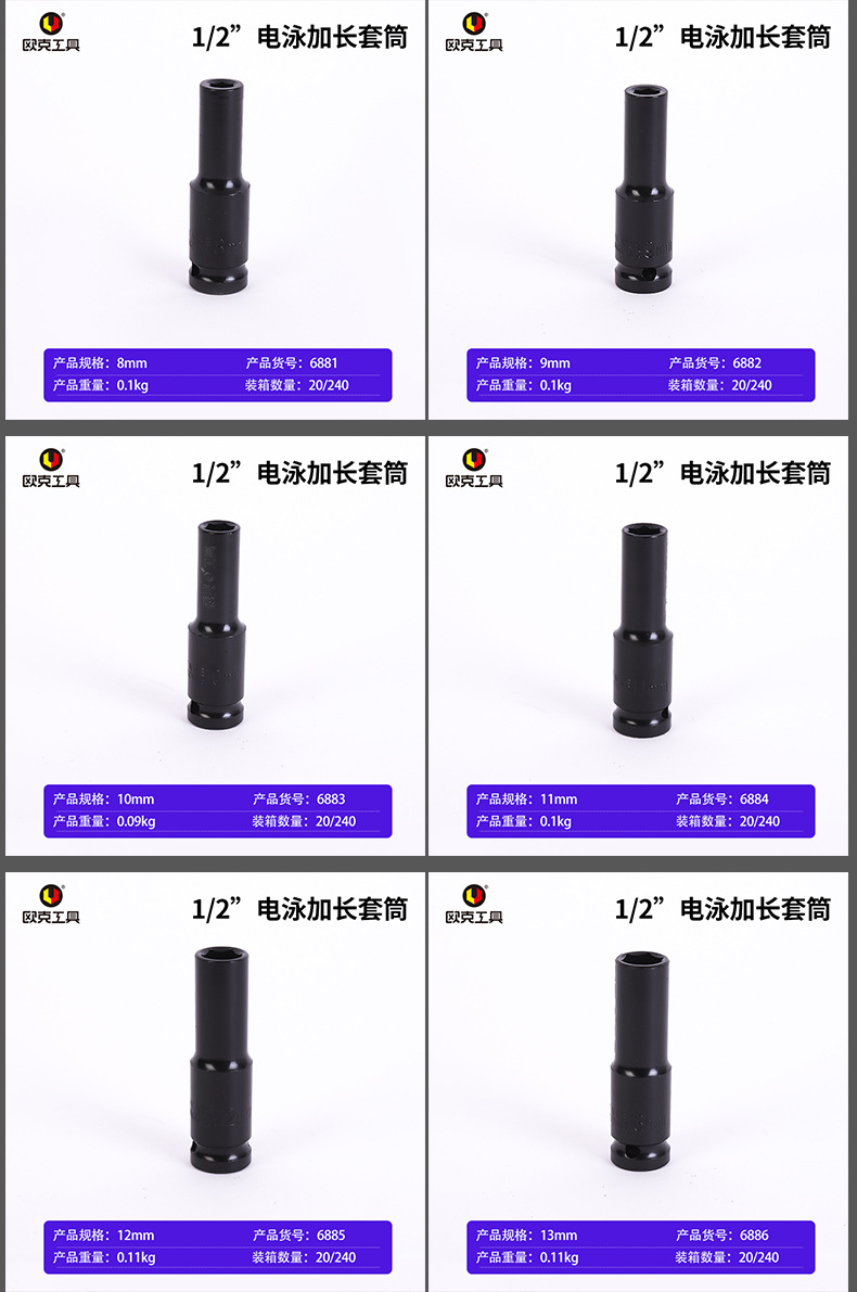 전기 도금 리튬 전동 공구 헤드 소켓 렌치 1/2 대형 연장형 전기 도금 소켓 헤드 78mm 육각스토어 가기