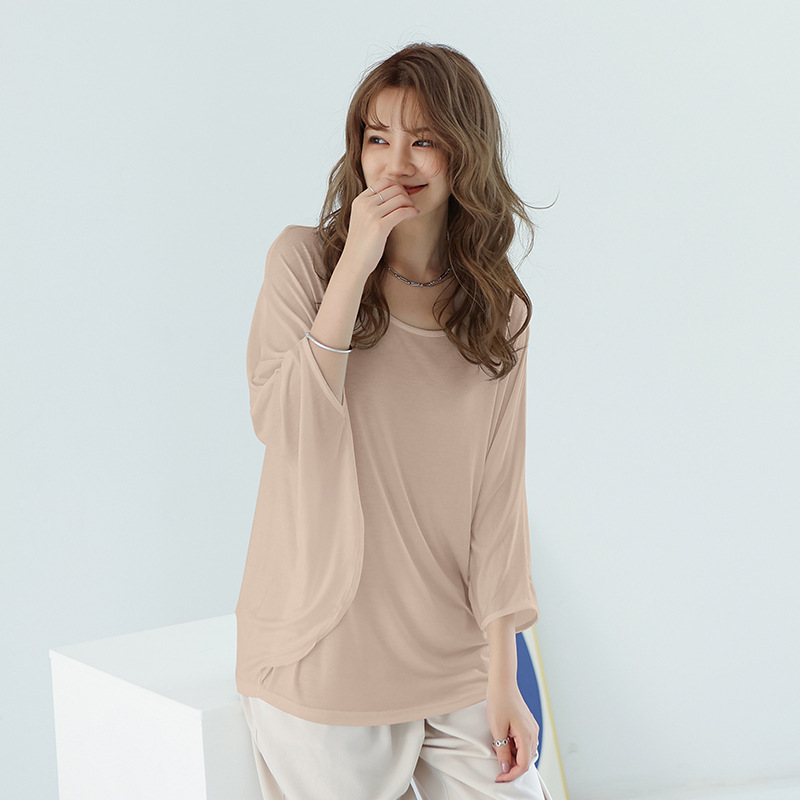 여름 한국 스타일 단색 여성 의류 모달 박쥐 소매 느슨한 반팔 티셔츠 슬리밍 탑 얇은 라운드 넥 플러스 사이즈스토어 가기
