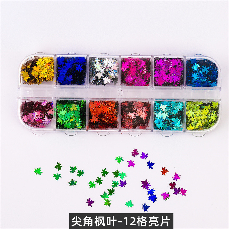 네일 아트 스팽글 12 박스 새로운 네일 DIY 소재 네일 액세서리 나비 네잎 클로버 불꽃 오각 별