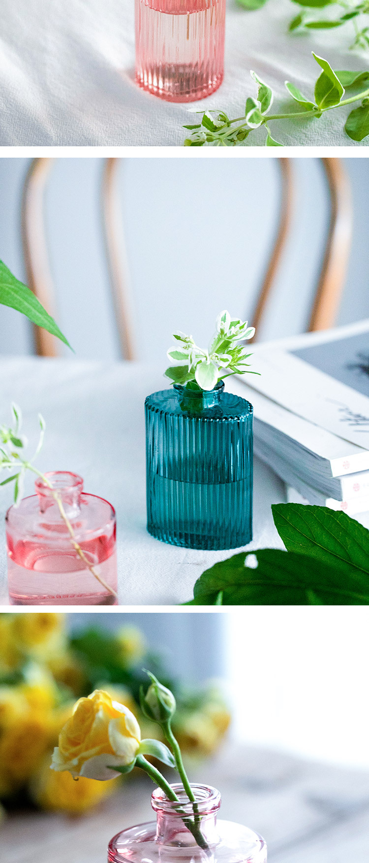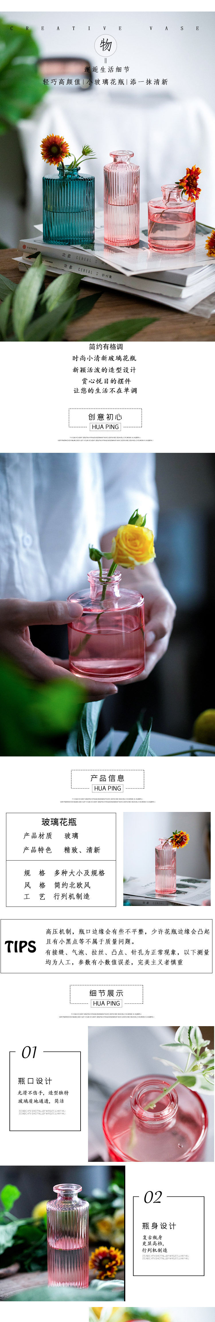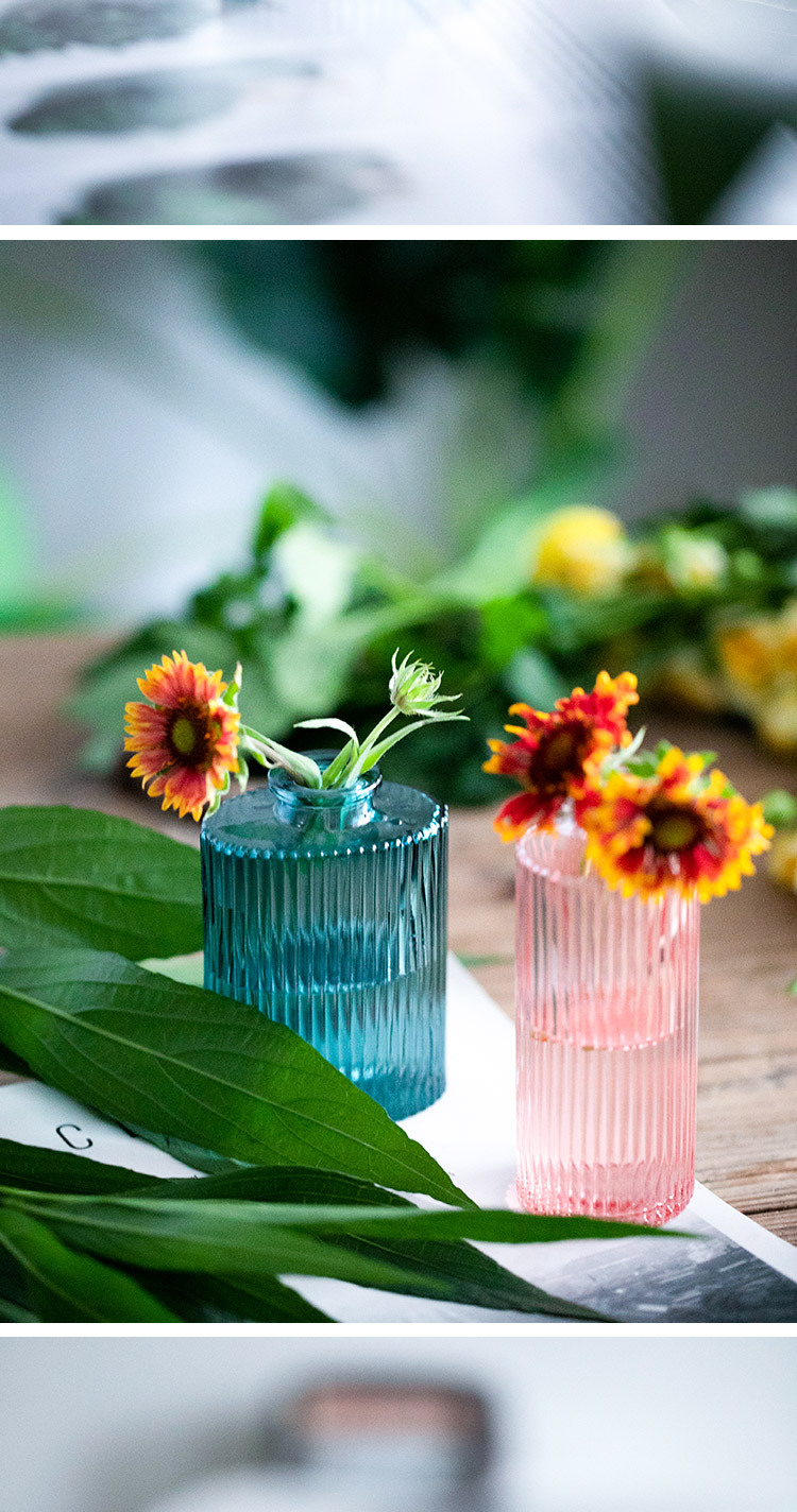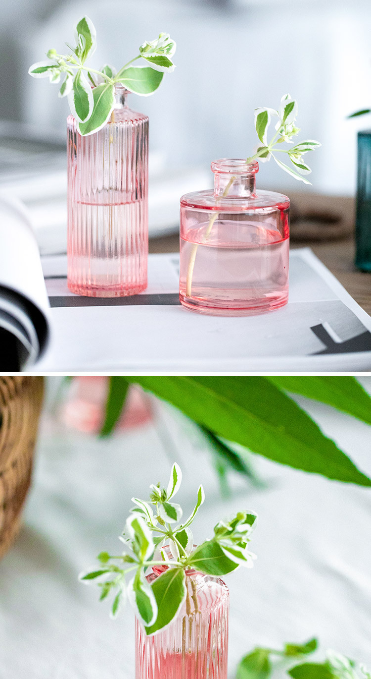 국경 간 핑크 유리 꽃병 창조적 인 수직 작은 투명 수경 꽃 녹색 식물 거실 장식 장식품 도매스토어 가기
