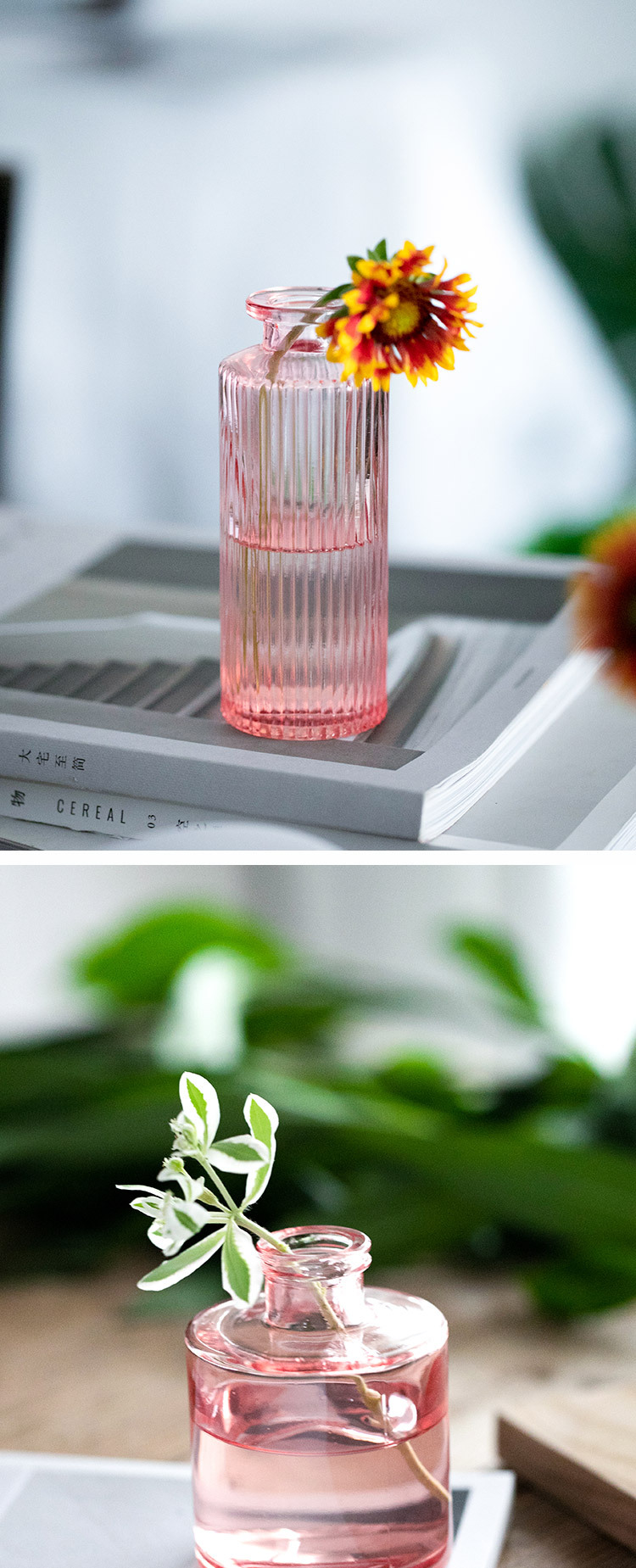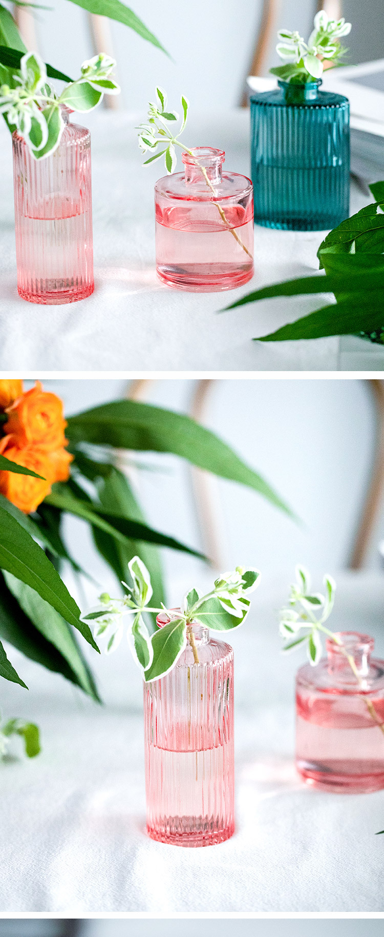 국경 간 핑크 유리 꽃병 창조적 인 수직 작은 투명 수경 꽃 녹색 식물 거실 장식 장식품 도매