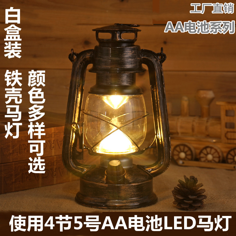 레트로 AA 배터리 말 램프 캠프 램프 LED 휴대용 등유 램프 캠핑 텐트 램프 철 장식품