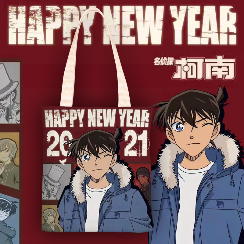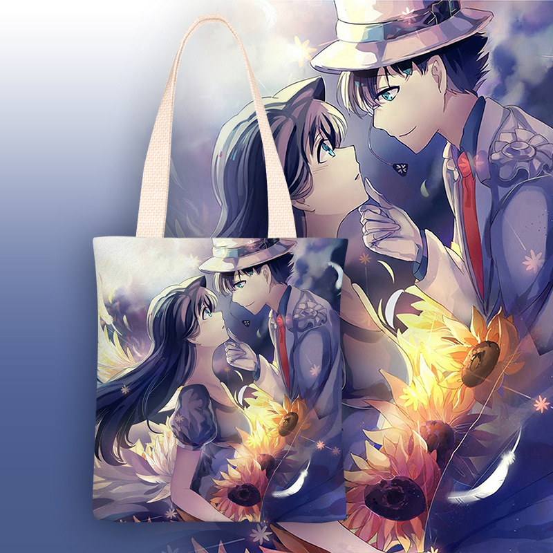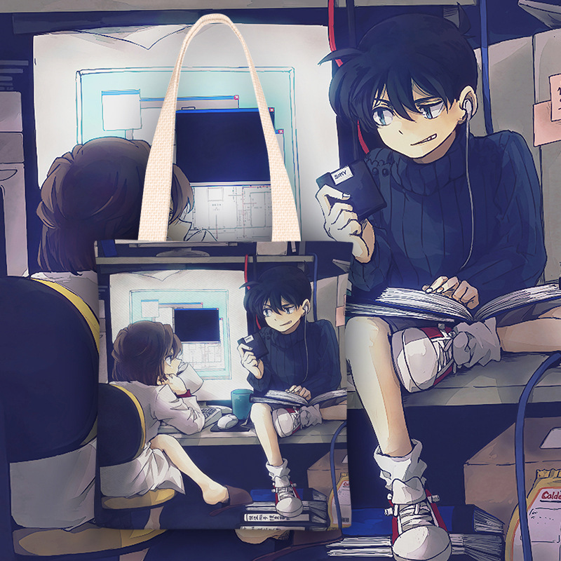 코난 애니메이션, 신선한 스타일 캔버스 가방 여성 싱글 어깨 간단한 학생 클래스 가방 여성의 2024 가을과 겨울 새로운스토어 가기