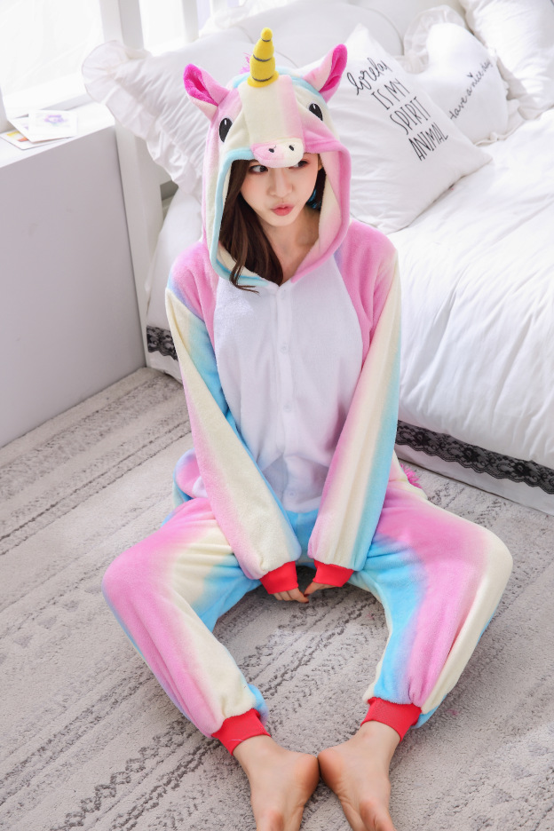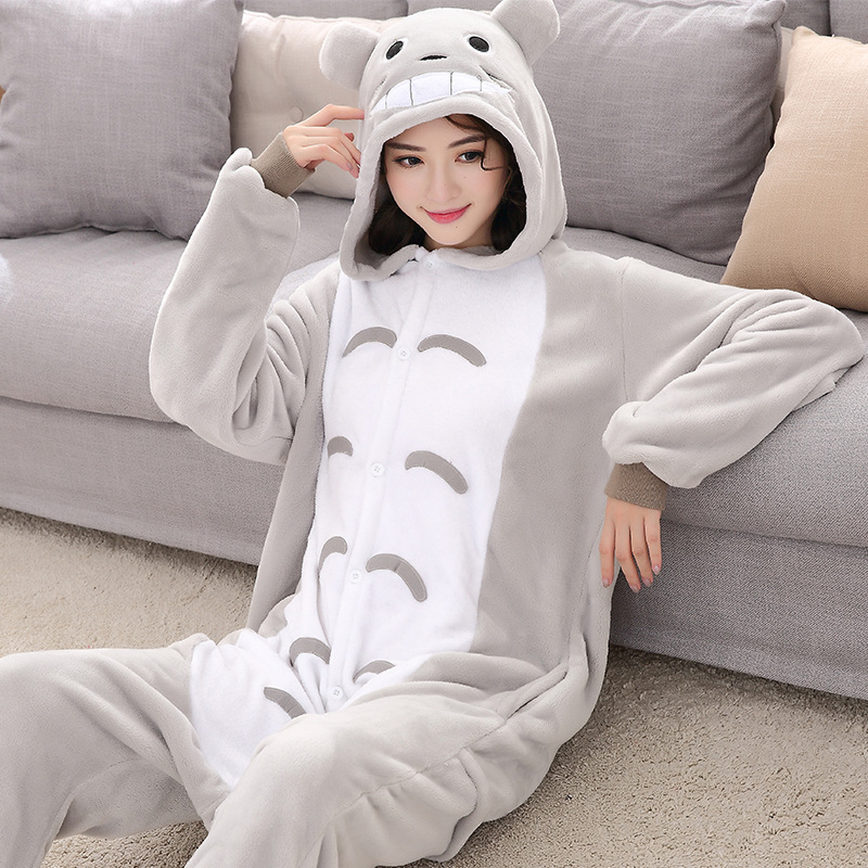 공장 도매 국경 토토로 유니콘 만화 한 몸 잠옷 플란넬 동물 한 몸 잠옷 성인 공연