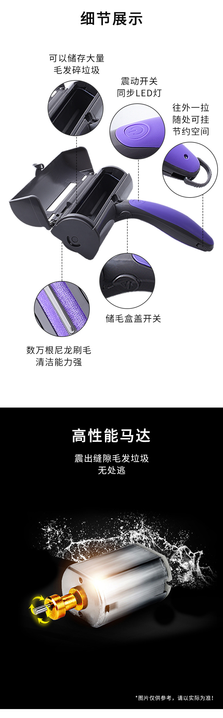 국경을 넘는 강아지 털 청소 브러쉬, 소파 및 의류 털 청소, 애완동물 LED 라이트 진동 다기능 브러쉬, 애완동물 용품스토어 가기