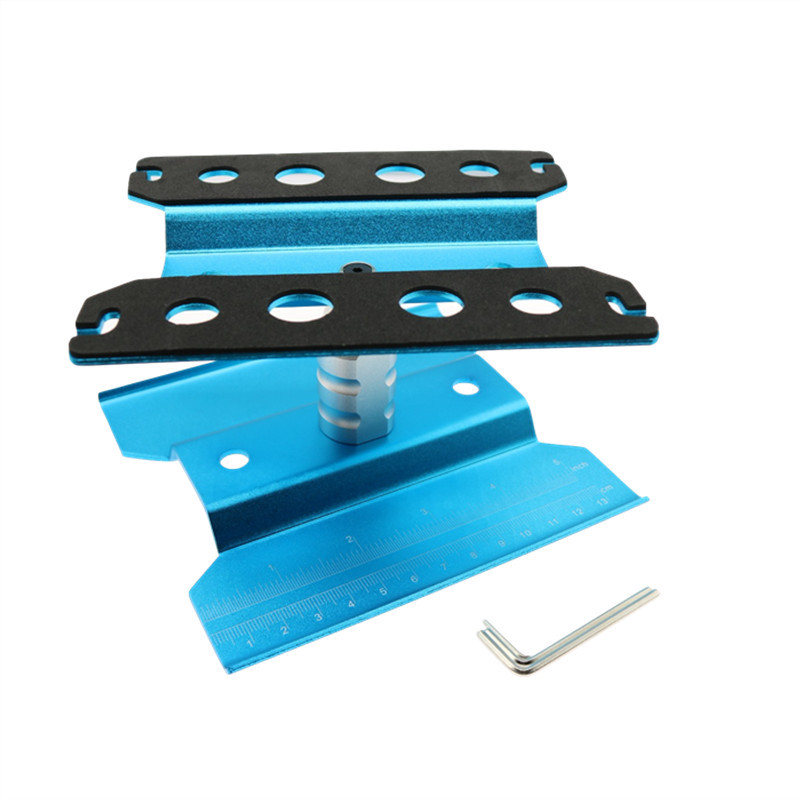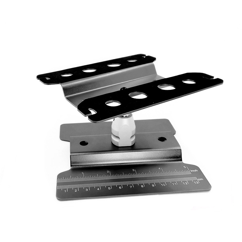 说明:铝合金材质,长140MM,宽120MM,可调高度60-90MM,配备英文说明书。带公英制量尺,高度自由调整,360度旋转和任意角度锁定,可安放多种避震器,拆装方便,体积小巧方便携带。undefined