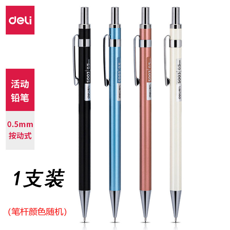 델리 s001 금속 자동 연필 0.5 학생 사용 자동 펜 무거운 느낌 활성 연필 조각 텍스트스토어 가기