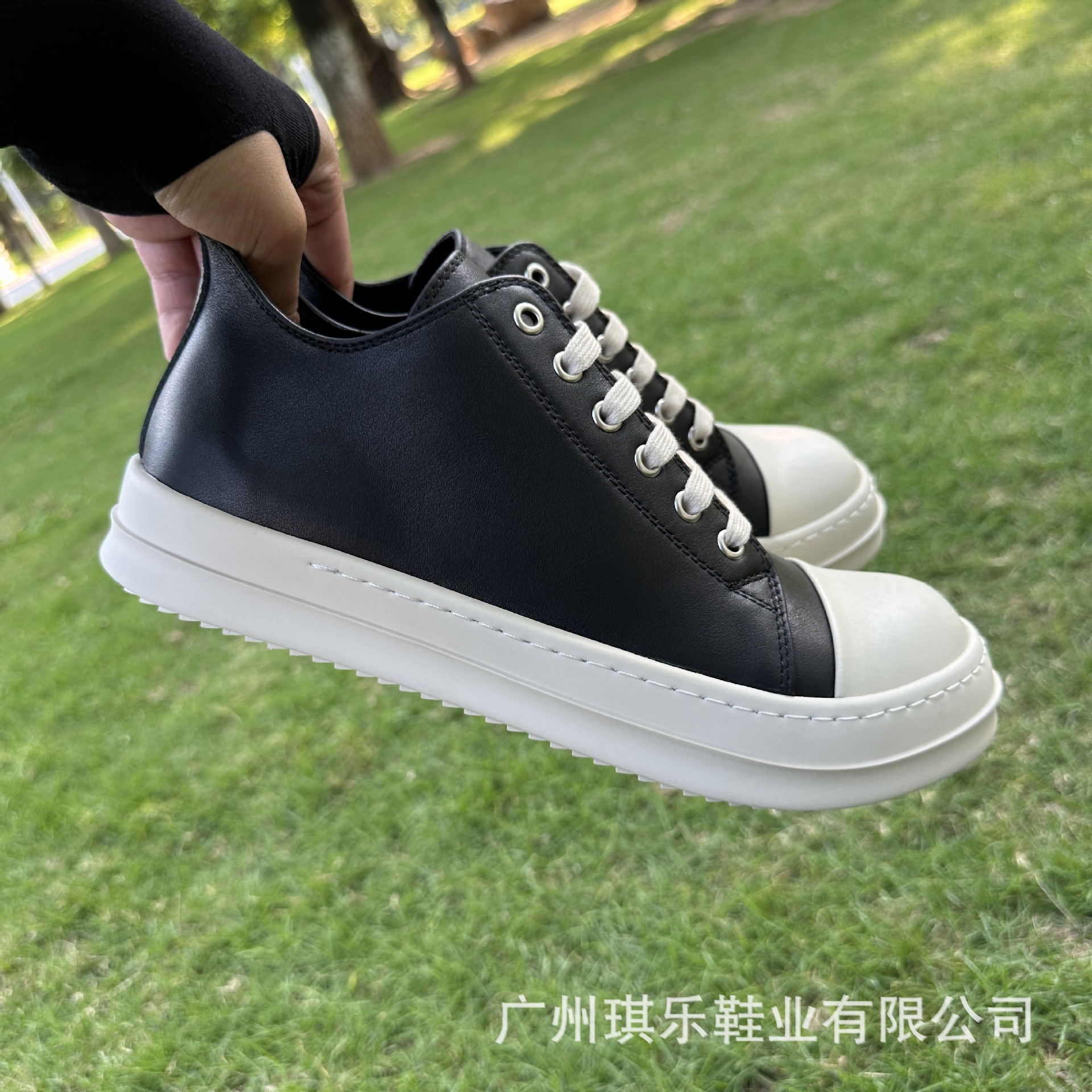 봄 여름 로우탑 스포츠화 남녀 공용 가죽 캐주얼 두꺼운 밑창 얕은 입구 끈 묶는 키높이 커플 운동화 편안하고 다용도