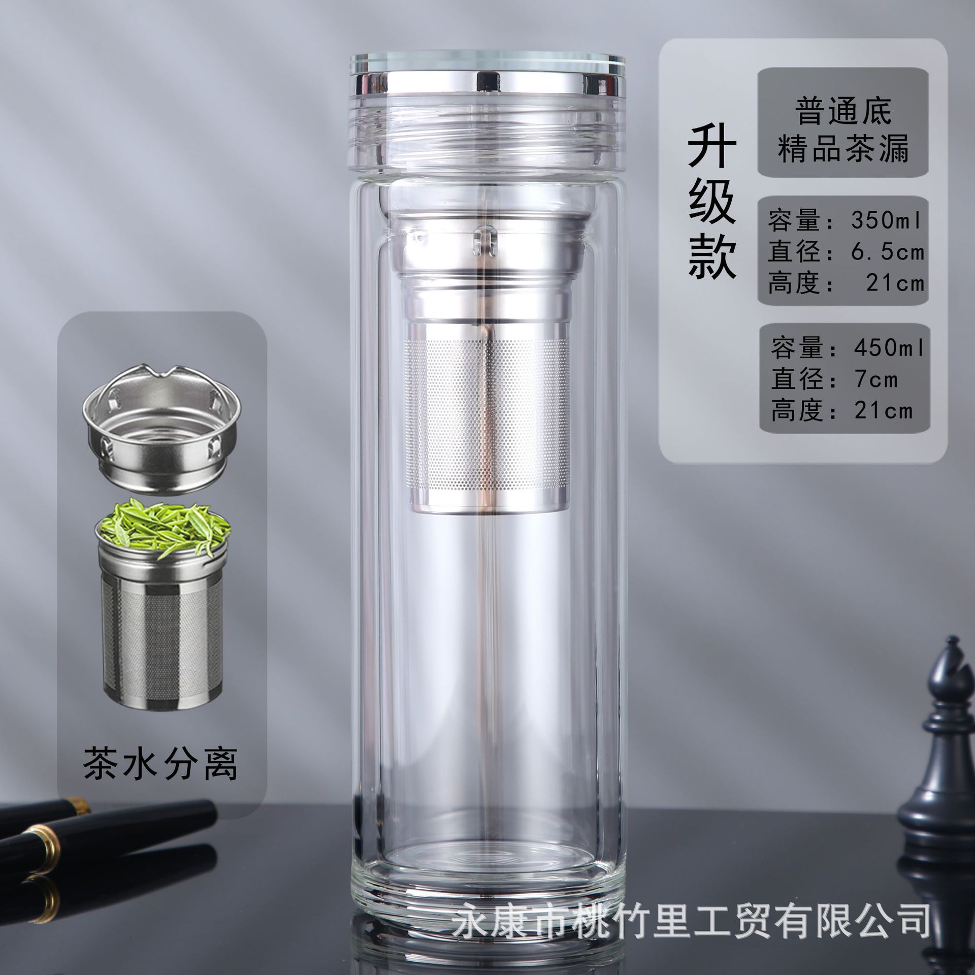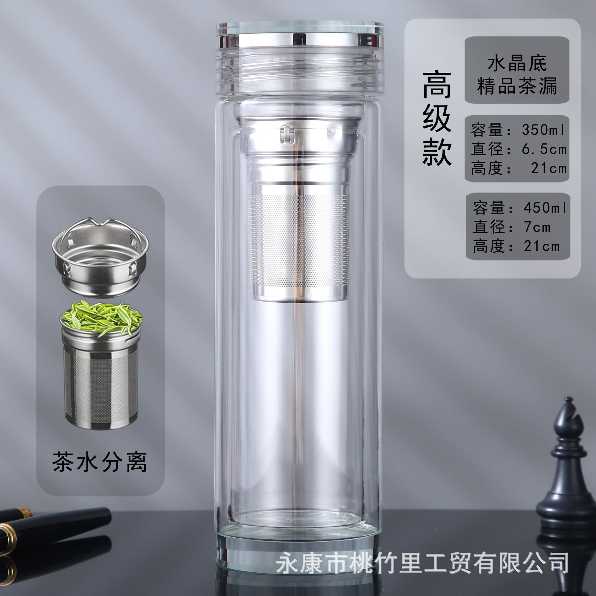 고급스러운 이중 유리컵 도매, 내열성 크리스탈 차컵, 차와 물 분리형 차컵