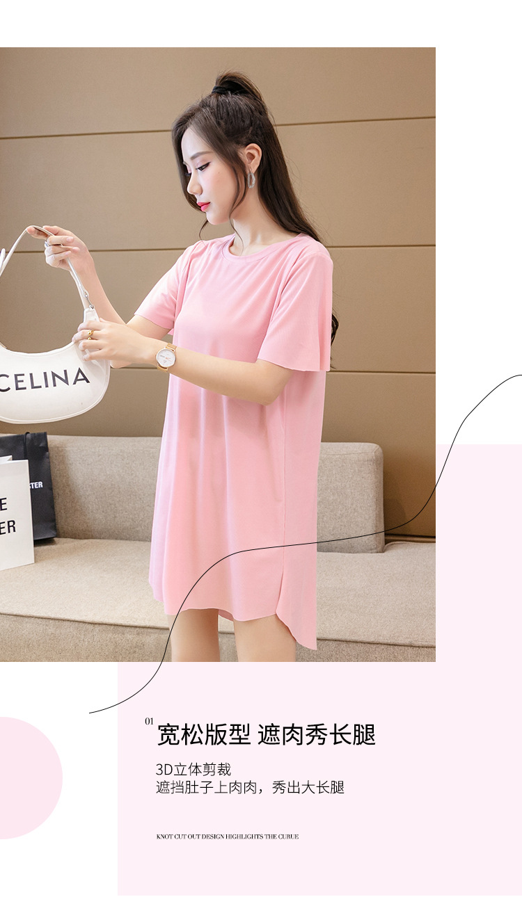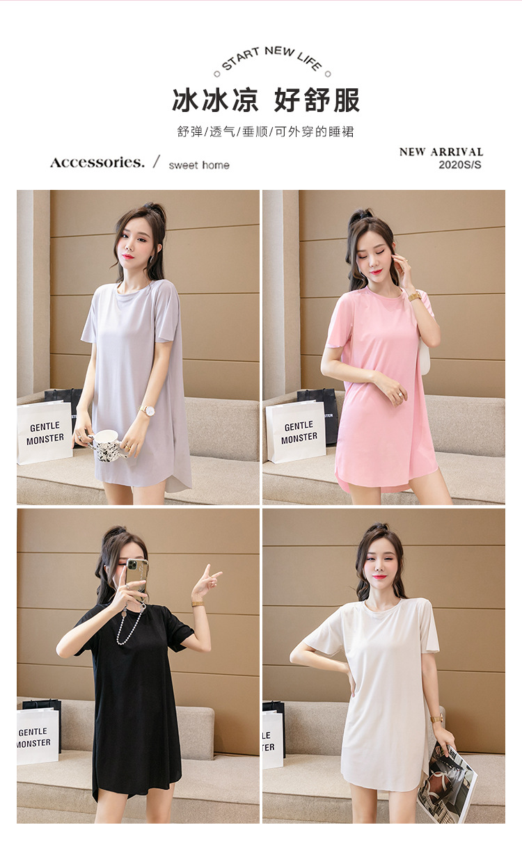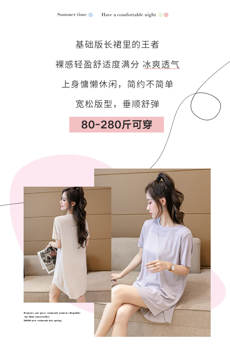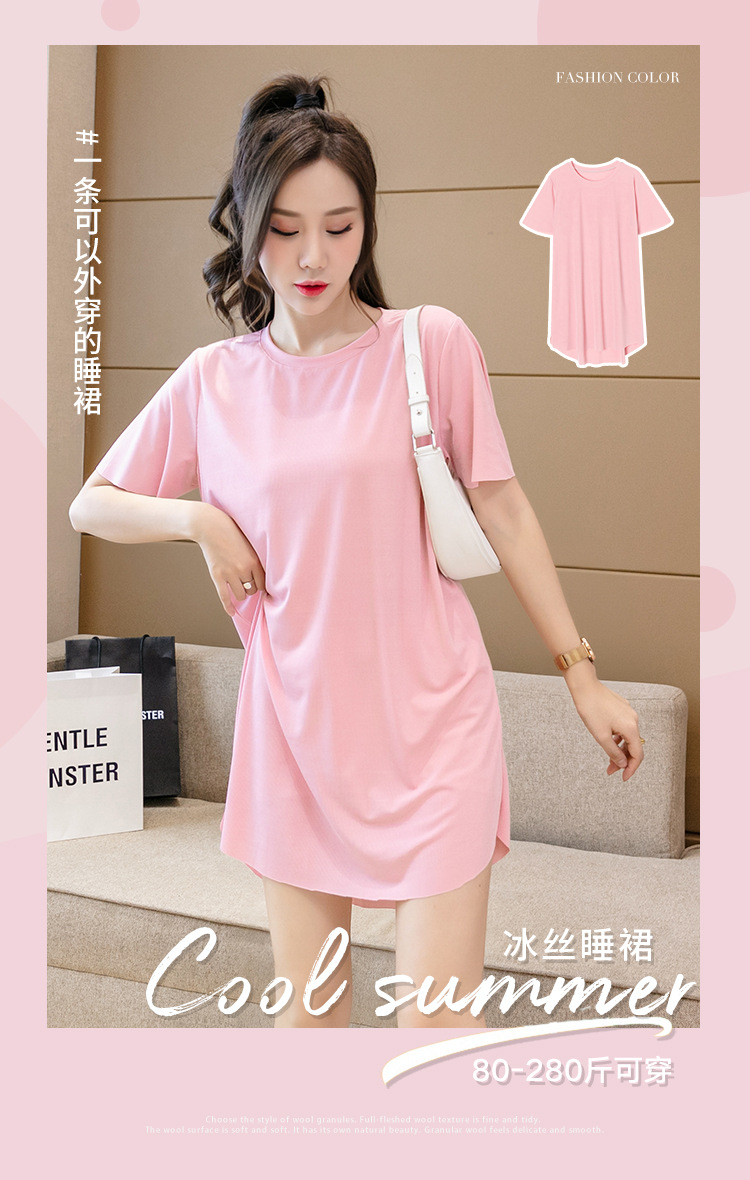 아이스 실크 원피스 잠옷 여성용 플러스 사이즈 여름 얇은 200kg 뚱뚱한 여동생 반팔 가정 옷 조커 슬림은 외부에서 착용 할 수 있습니다스토어 가기