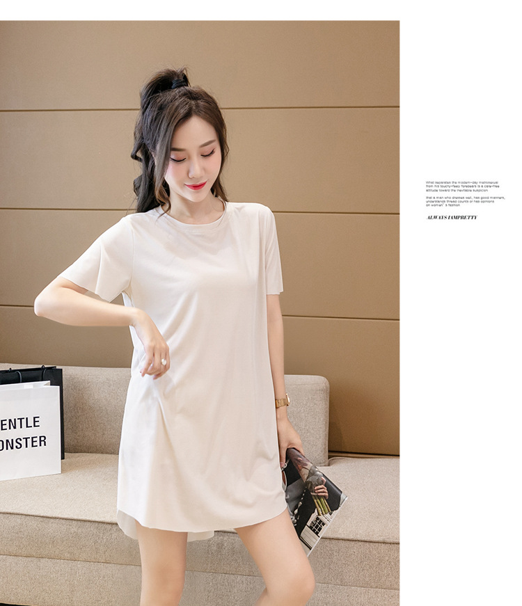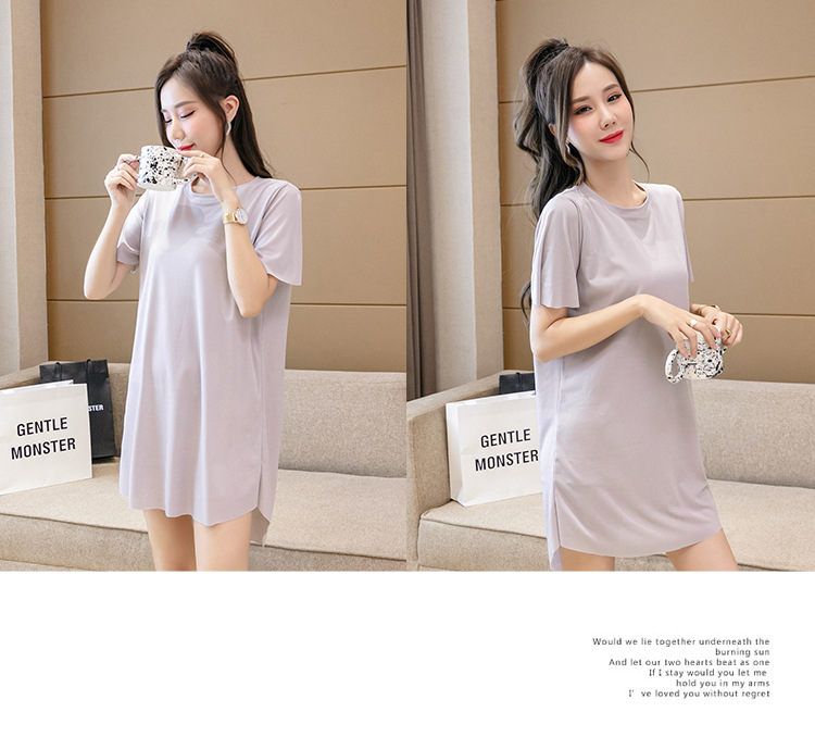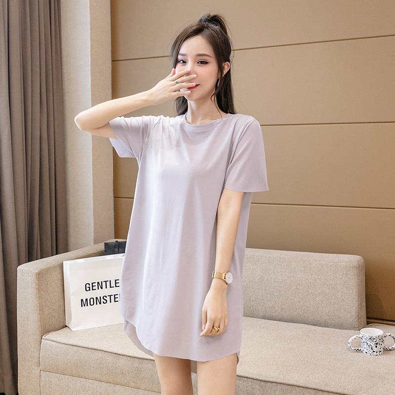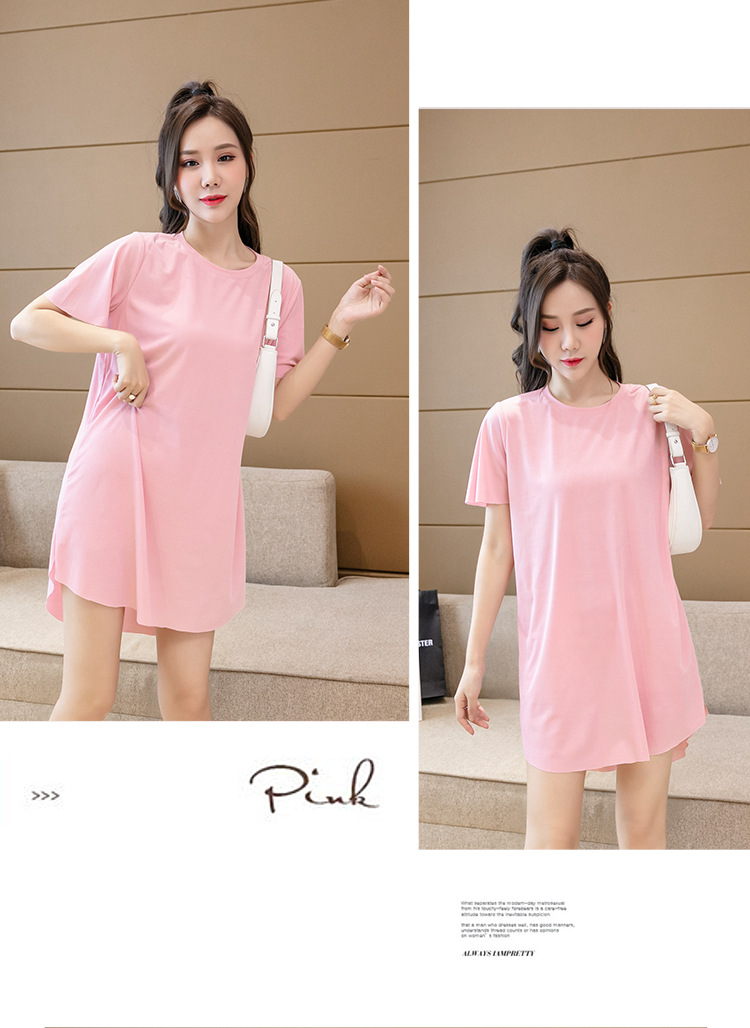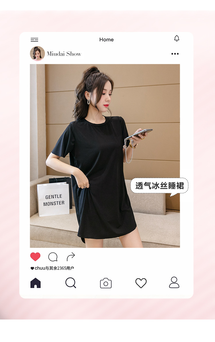 아이스 실크 원피스 잠옷 여성용 플러스 사이즈 여름 얇은 200kg 뚱뚱한 여동생 반팔 가정 옷 조커 슬림은 외부에서 착용 할 수 있습니다스토어 가기