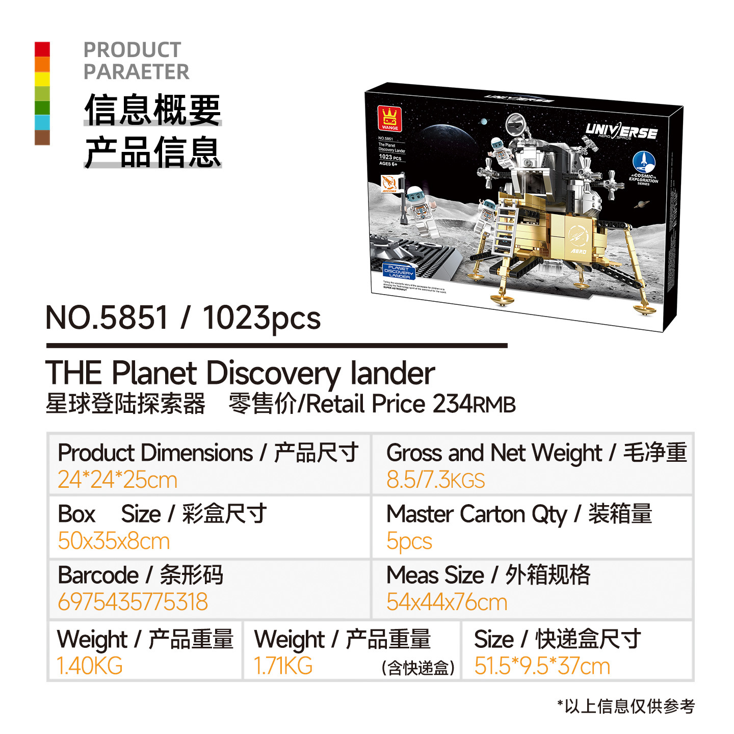 완게 소형 블록 우주 시리즈 장난감 행성 착륙 탐험가 우주비행사 달 착륙 5851 교육용 장난감