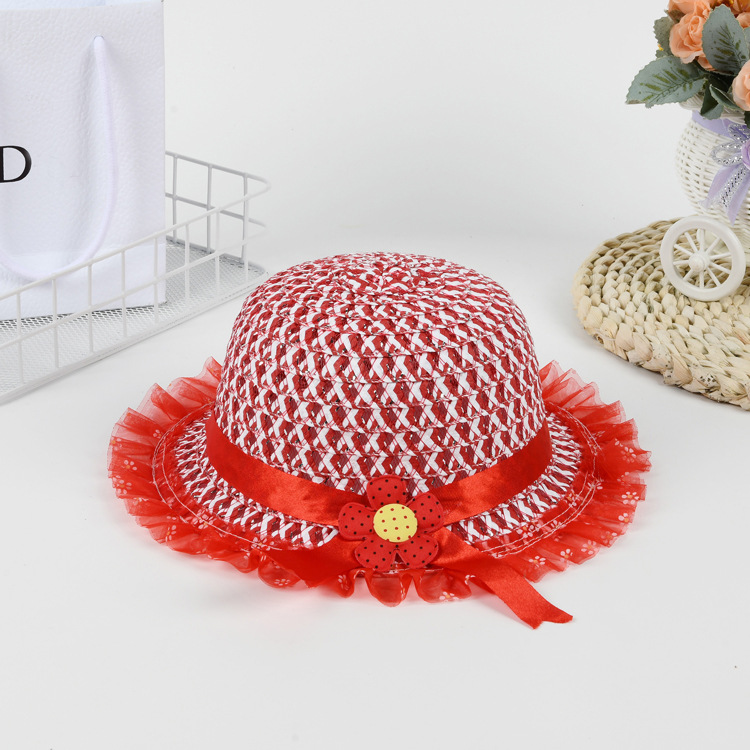 어린이 야외 여름 시즌 여아 자외선 차단제 그늘 큰 이브 레이스 크로스 해바라기 꽃 밀짚 모자 비치 모자
