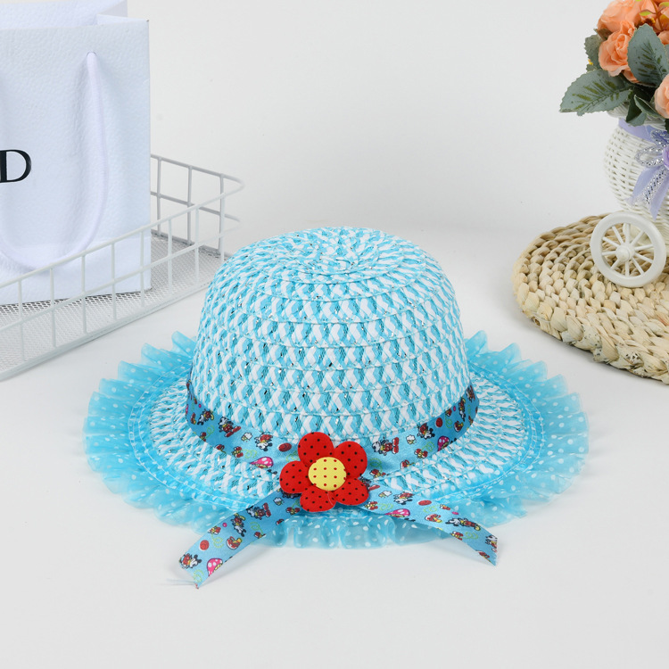 어린이 야외 여름 시즌 여아 자외선 차단제 그늘 큰 이브 레이스 크로스 해바라기 꽃 밀짚 모자 비치 모자스토어 가기
