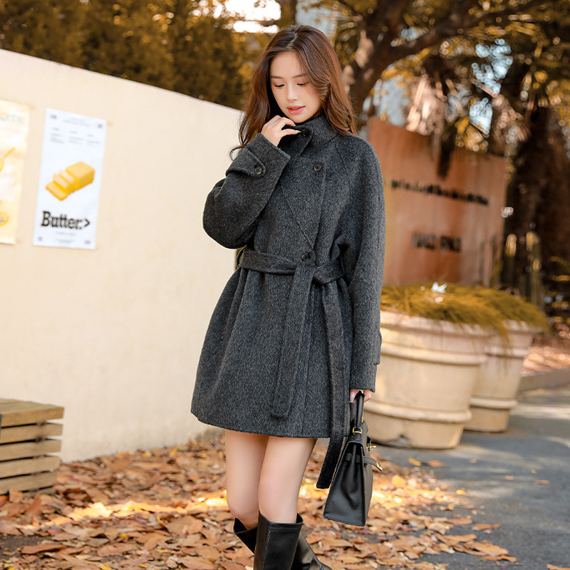 일본과 한국 스타일의 스탠드 칼라 양면 캐시미어 코트 여성용 2025년 신상 가을 겨울 패션 작은 사이즈 루즈핏 모직 코트스토어 가기