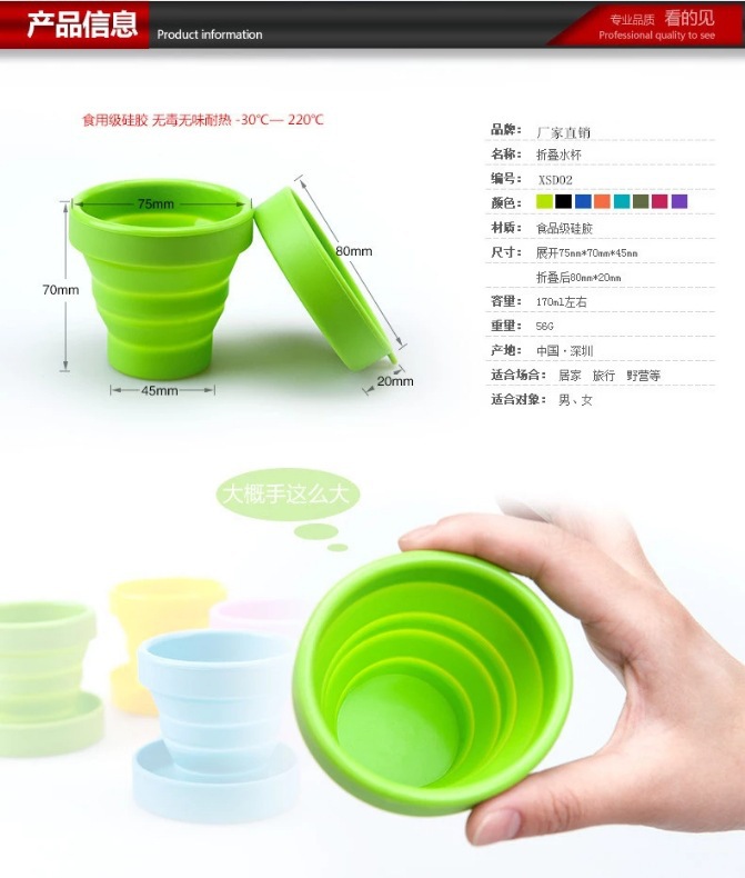 식품 등급 실리콘 접이식 물 컵 캔디 컬러 워터 컵 고온 방지 백금 실리콘 접이식 컵 야외 휴대용