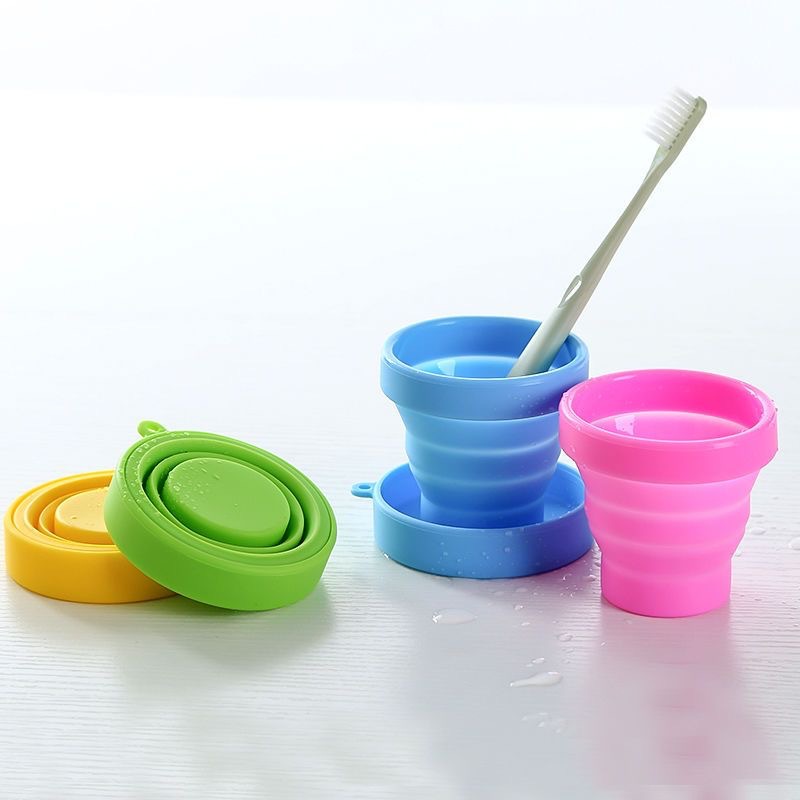 식품 등급 실리콘 접이식 물 컵 캔디 컬러 워터 컵 고온 방지 백금 실리콘 접이식 컵 야외 휴대용스토어 가기