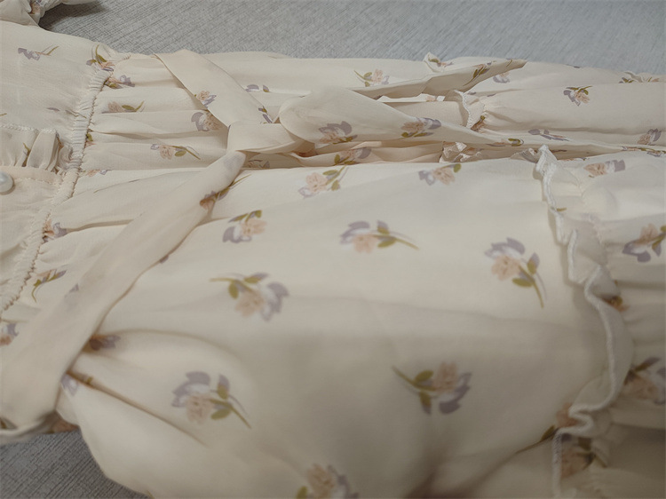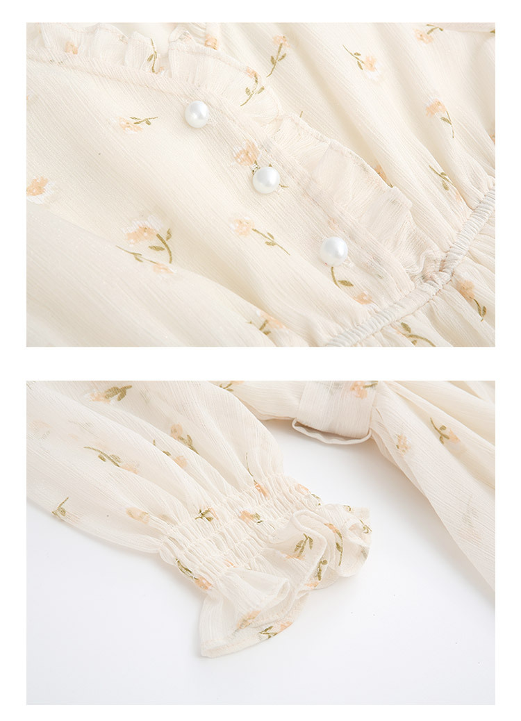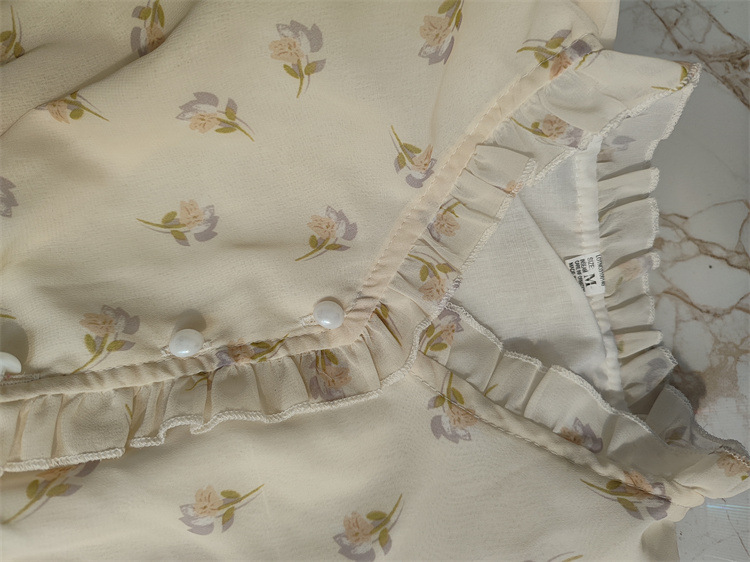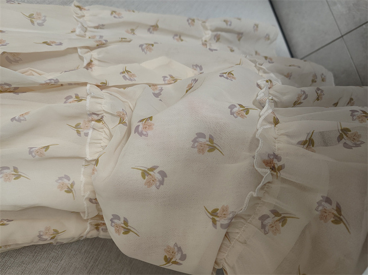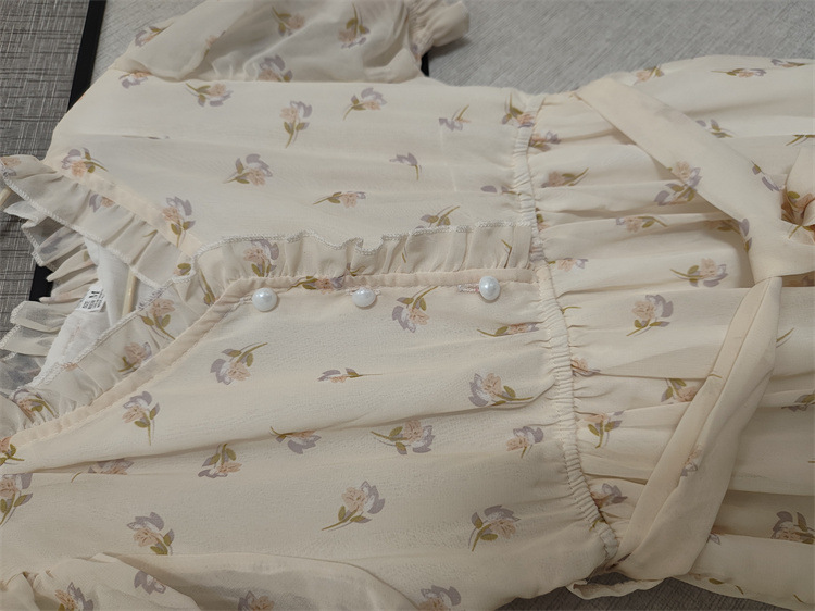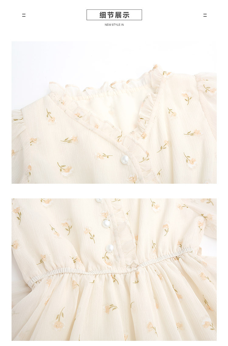 어린이 보헤미안 긴 살구색 꽃 원피스 어머니-딸 부모-자식 세트 어머니 딸 레이스 칼라 쉬폰 얇은 스커트