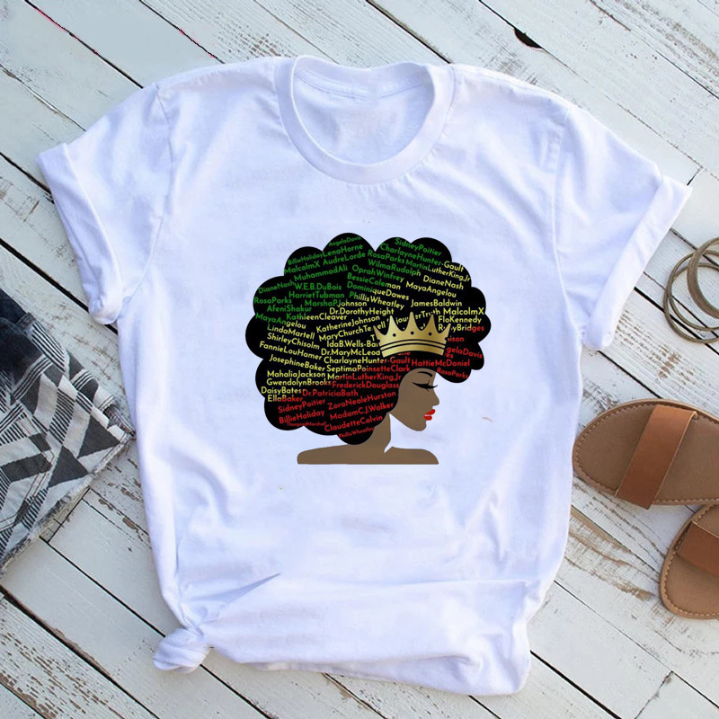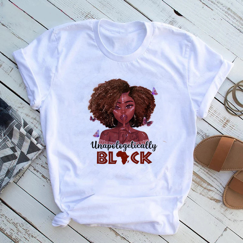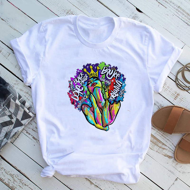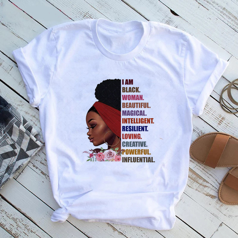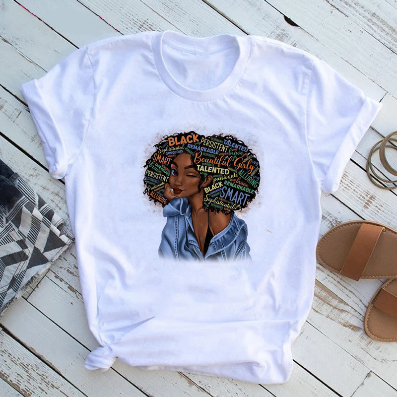 여성 T 셔츠 패션 캐주얼 만화 페미니스트 만화 아프리카 소녀 인쇄 여성 짧은 소매 티셔츠