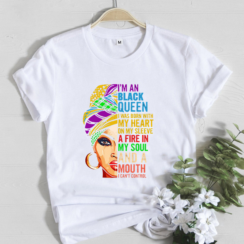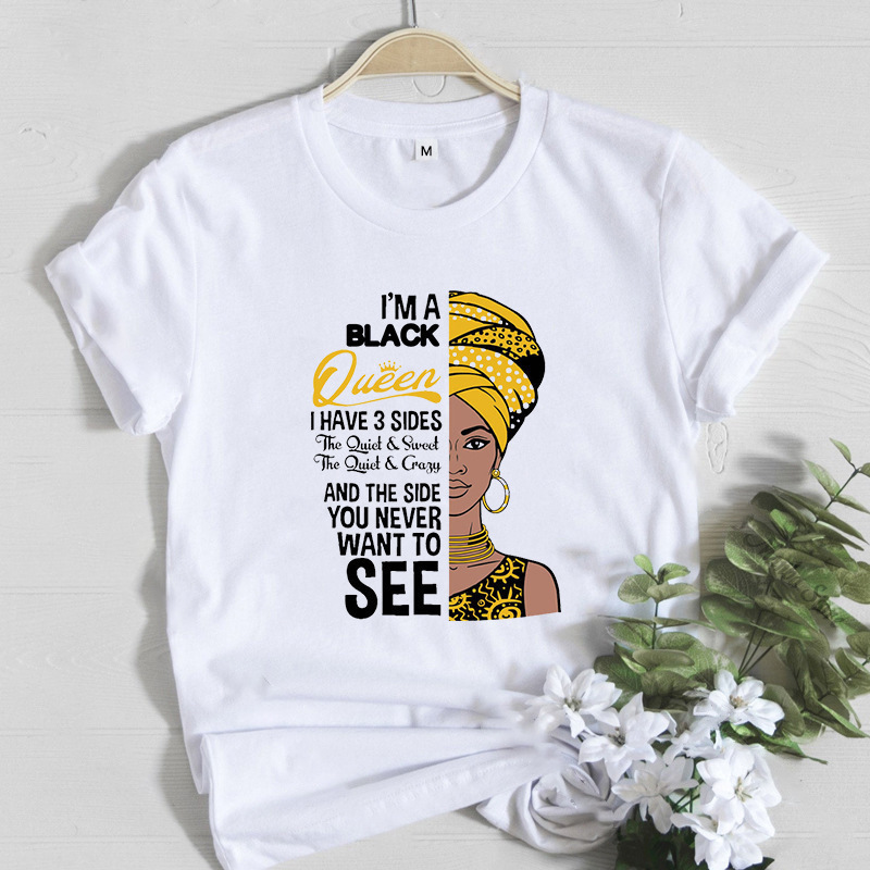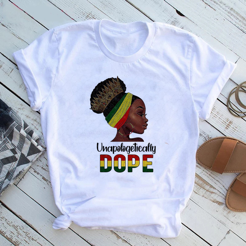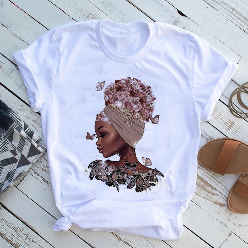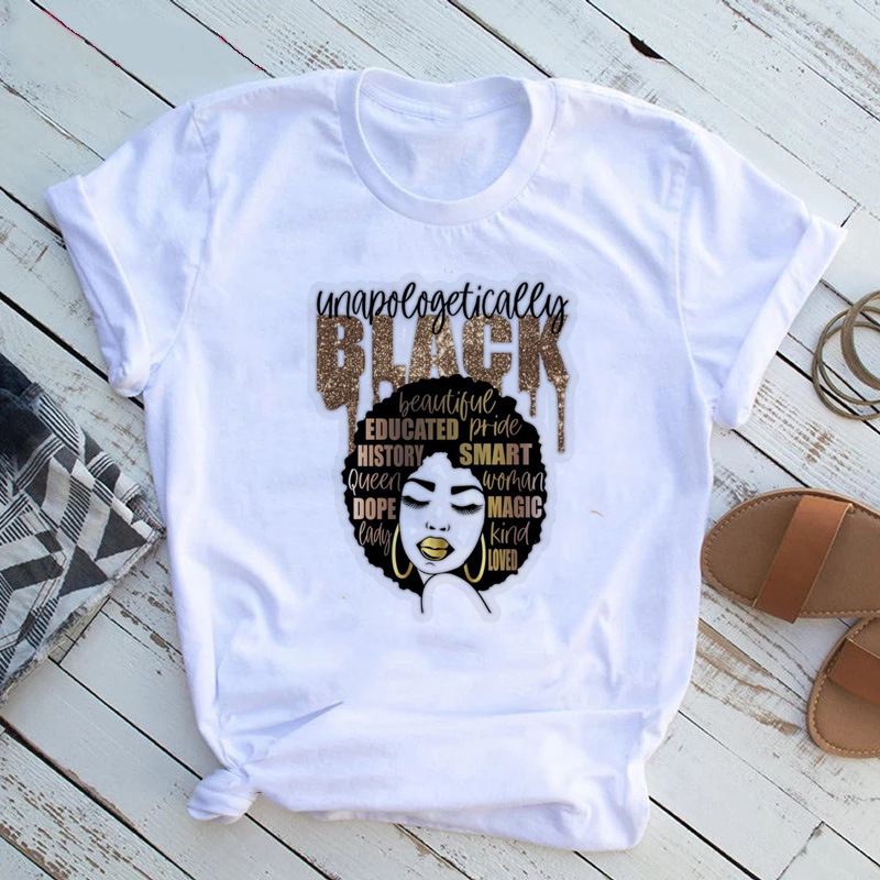 여성 T 셔츠 패션 캐주얼 만화 페미니스트 만화 아프리카 소녀 인쇄 여성 짧은 소매 티셔츠