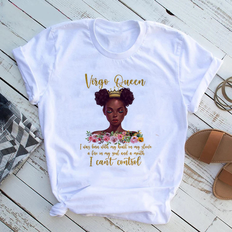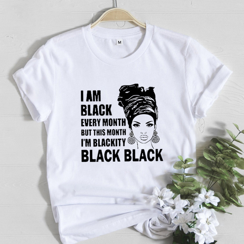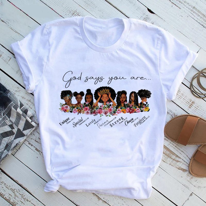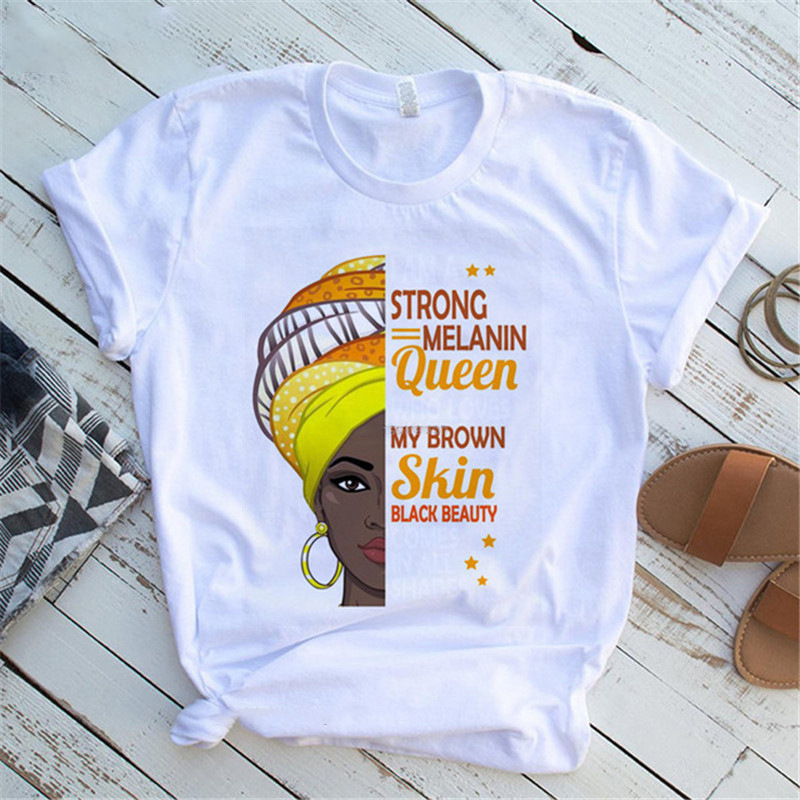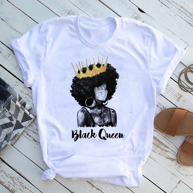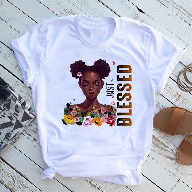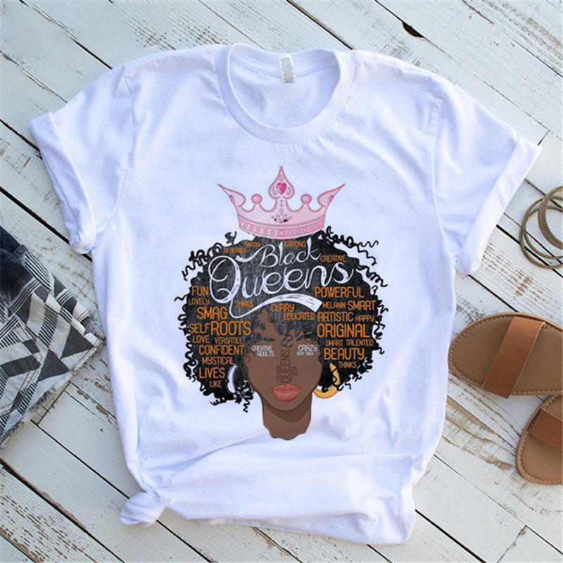 여성 T 셔츠 패션 캐주얼 만화 페미니스트 만화 아프리카 소녀 인쇄 여성 짧은 소매 티셔츠스토어 가기