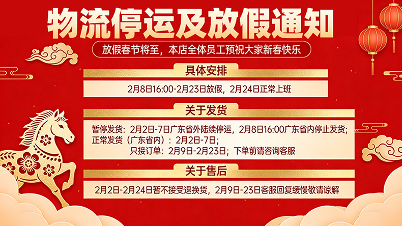 当天16:00前付款,当天发货;16∶00之后付款,次日发货。由于特殊原因未能准时发货的,我们会通知买家,请大家多多包含,万分感谢!
