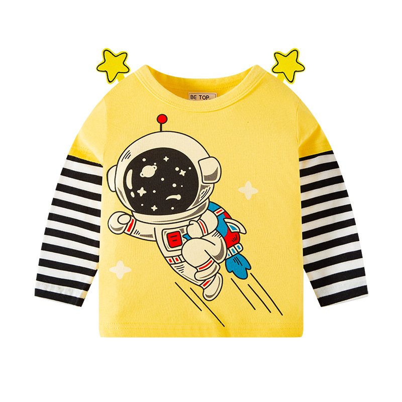 아동복 기본 셔츠 봄과 가을 새로운 우주 비행사 만화 입체 인쇄 어린이 긴팔 티셔츠 남아 유행스토어 가기