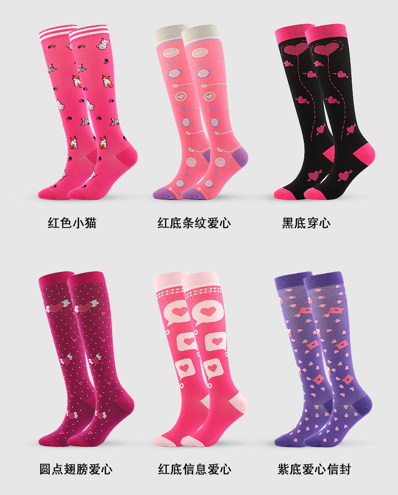 새로운 발렌타인 데이 압축 양말 압력 얕은 양말 스포츠 압력 양말 스키니 다리 미용 다리 양말 의료 보조 인색 양말스토어 가기