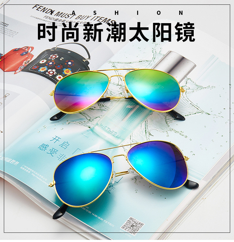 패션 남성과 여성 3026 선글라스 여러 가지 빛깔의 안경 파일럿 두꺼비 거울 금속 선글라스 선글라스 거리 매점 도매