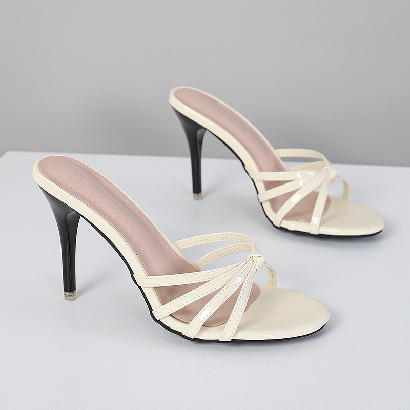 AliExpress 2021 유럽 및 미국 새로운 패션 여성 신발 하이힐 에나멜 가죽 슬리퍼 겉옷 심플 샌들 크로스 보더