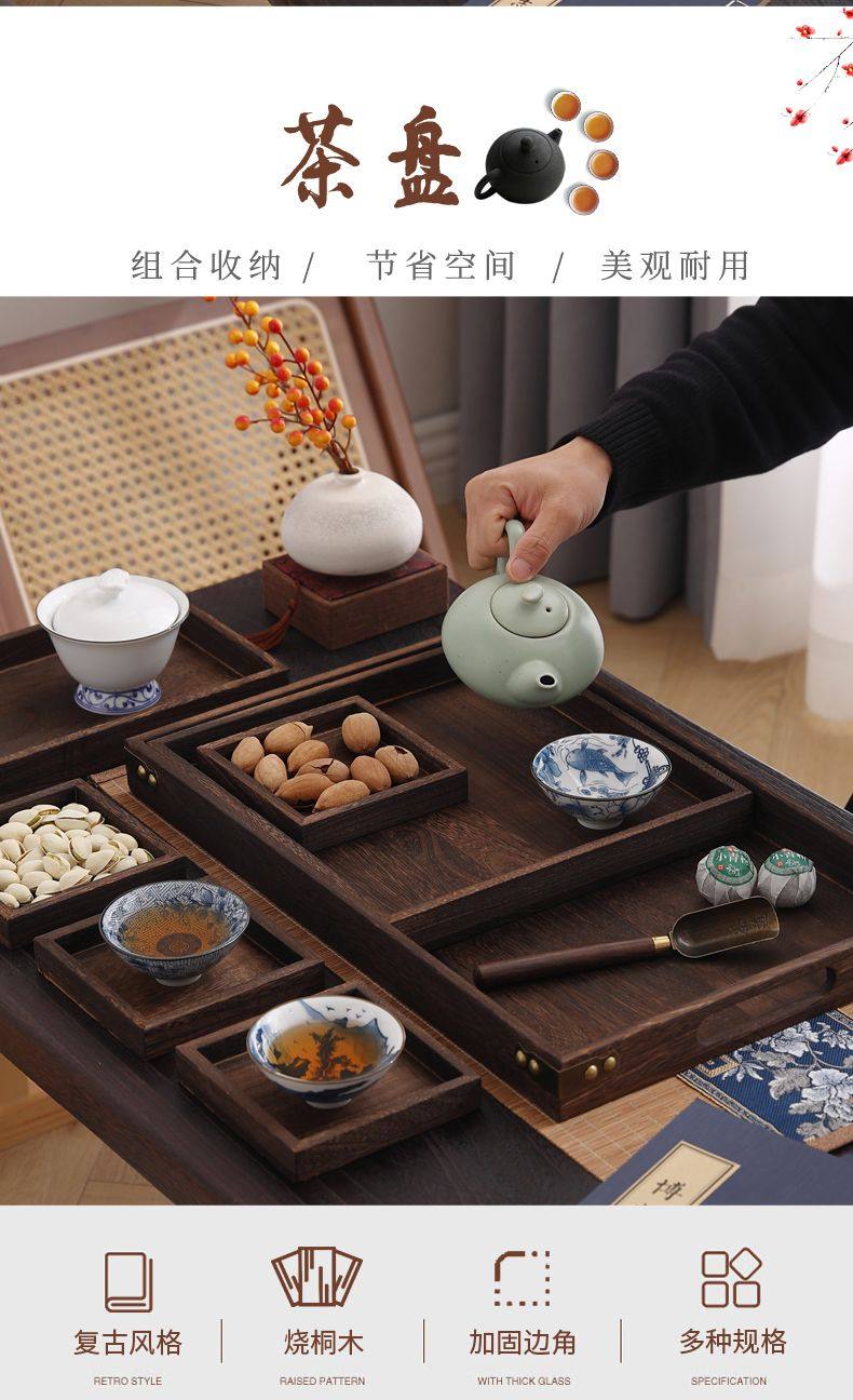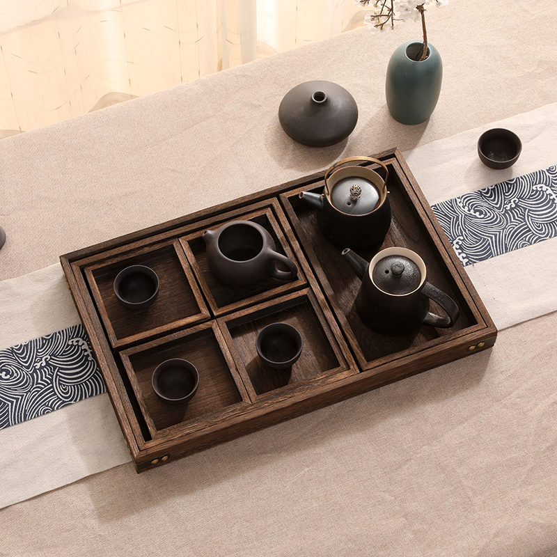 일본 스타일 나무 쪼개지는 끓는 차 쟁반 7 피스 간단한 단단한 나무 말린 과일 과자 차 쟁반스토어 가기