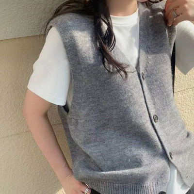 봄과 가을 새로운 니트 조끼 여성용 버클 스웨터 코트 대학 스타일 조끼 트렌디한 한국식 V-넥 민소매 조끼