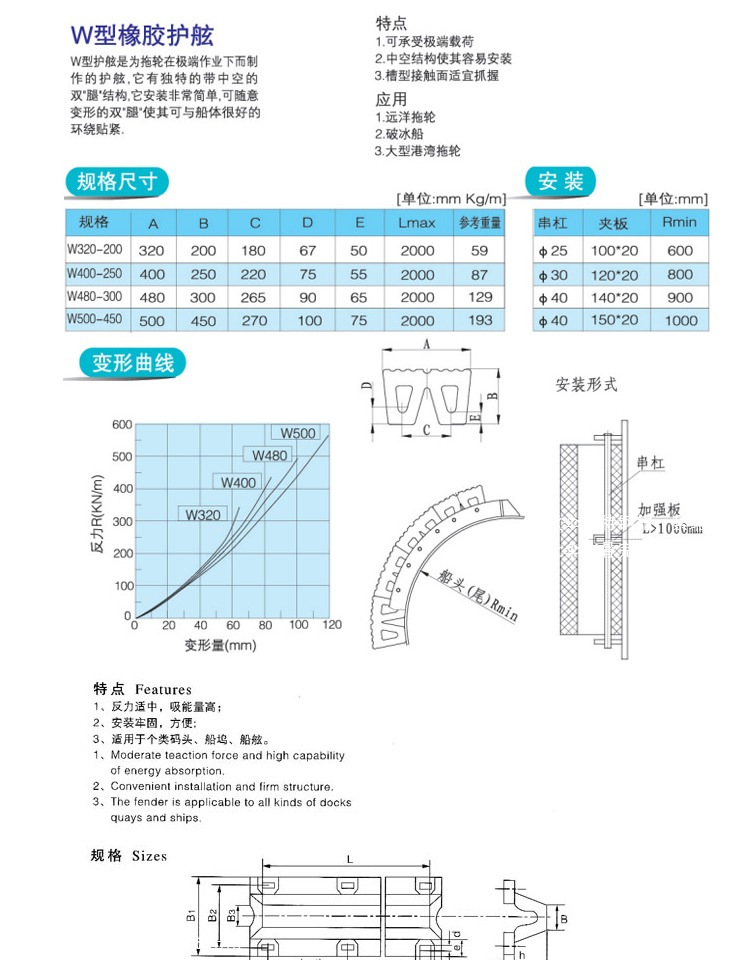 하이 퀄리티 U 자형 고무 펜더 GD300H * 1000 대형 부두 충돌 방지 고무 스트립 공장 직접 품질 보증스토어 가기