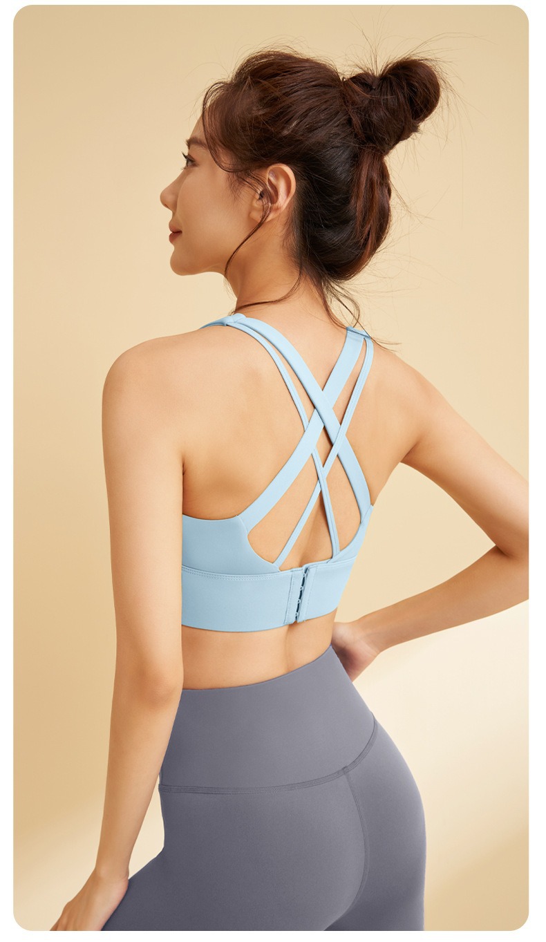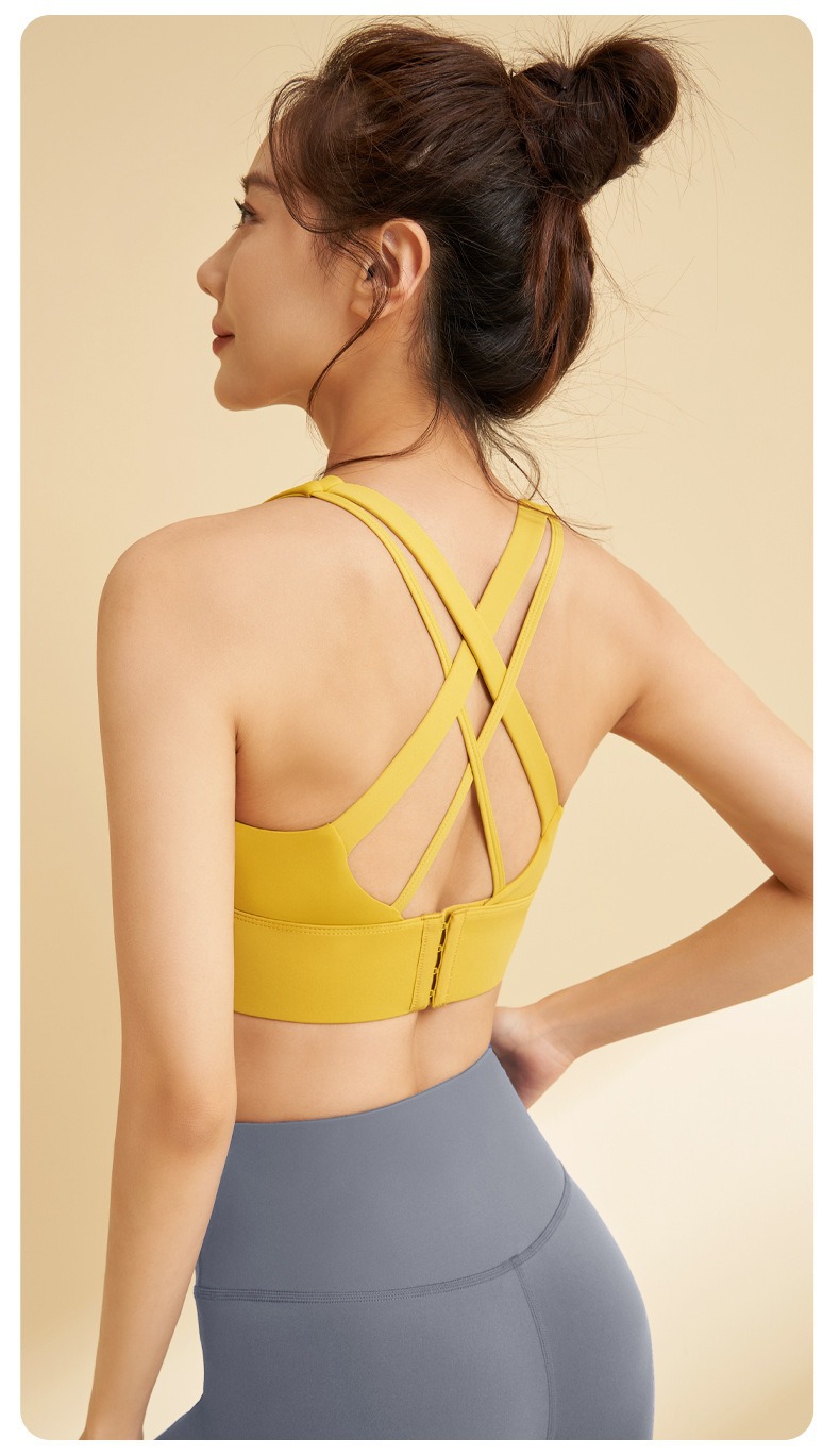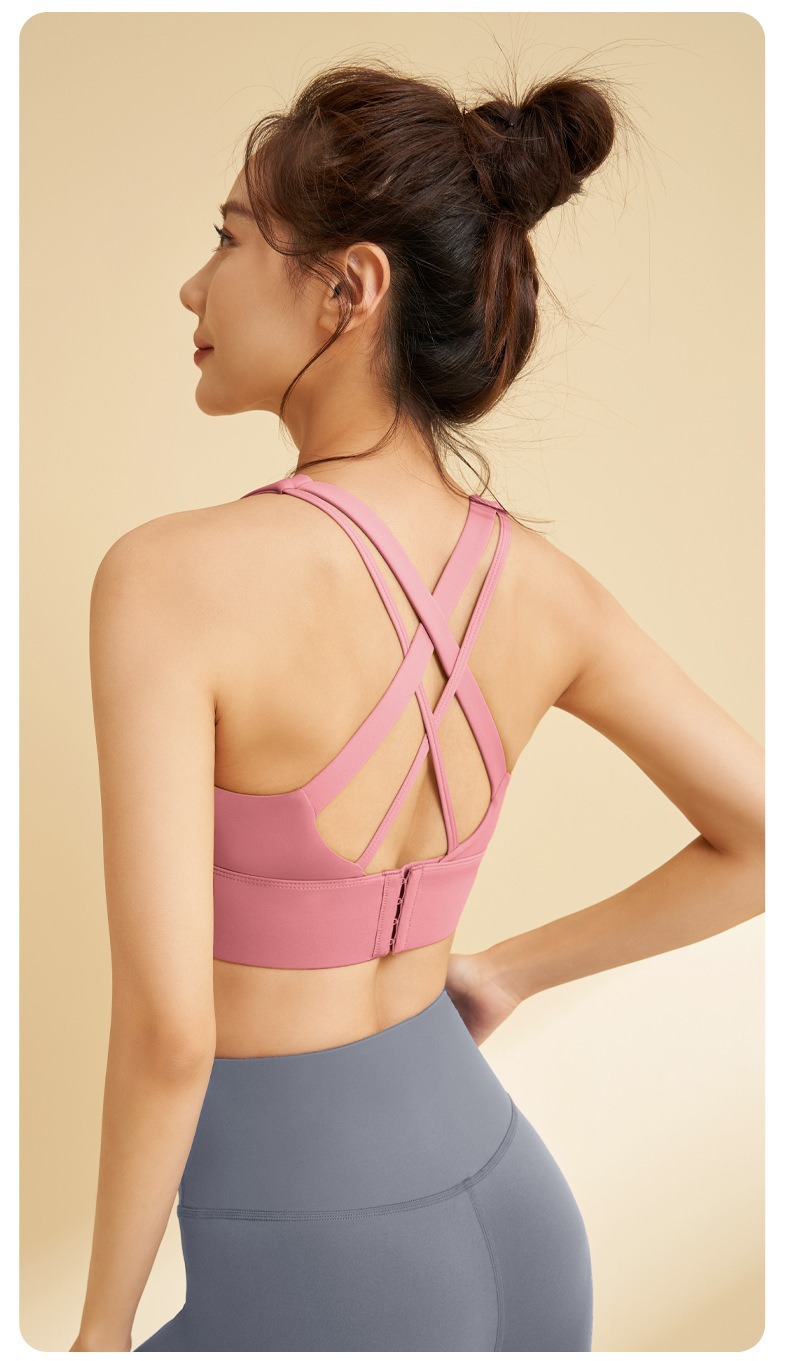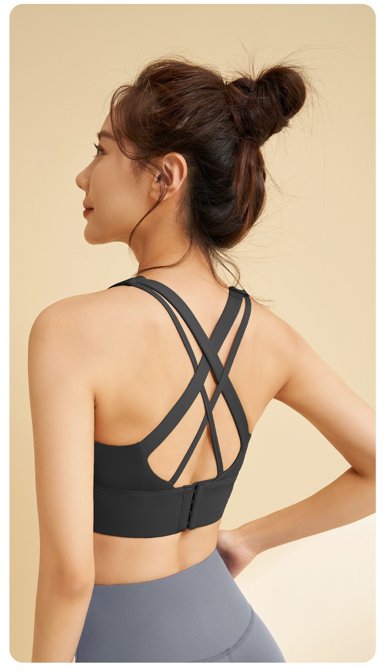 Juyitang 러닝 피트니스 벌거 벗은 느낌 푸시 업 크로스 아름다운 등 요가 조끼 여성 고강도 충격 방지 스포츠 브래지어