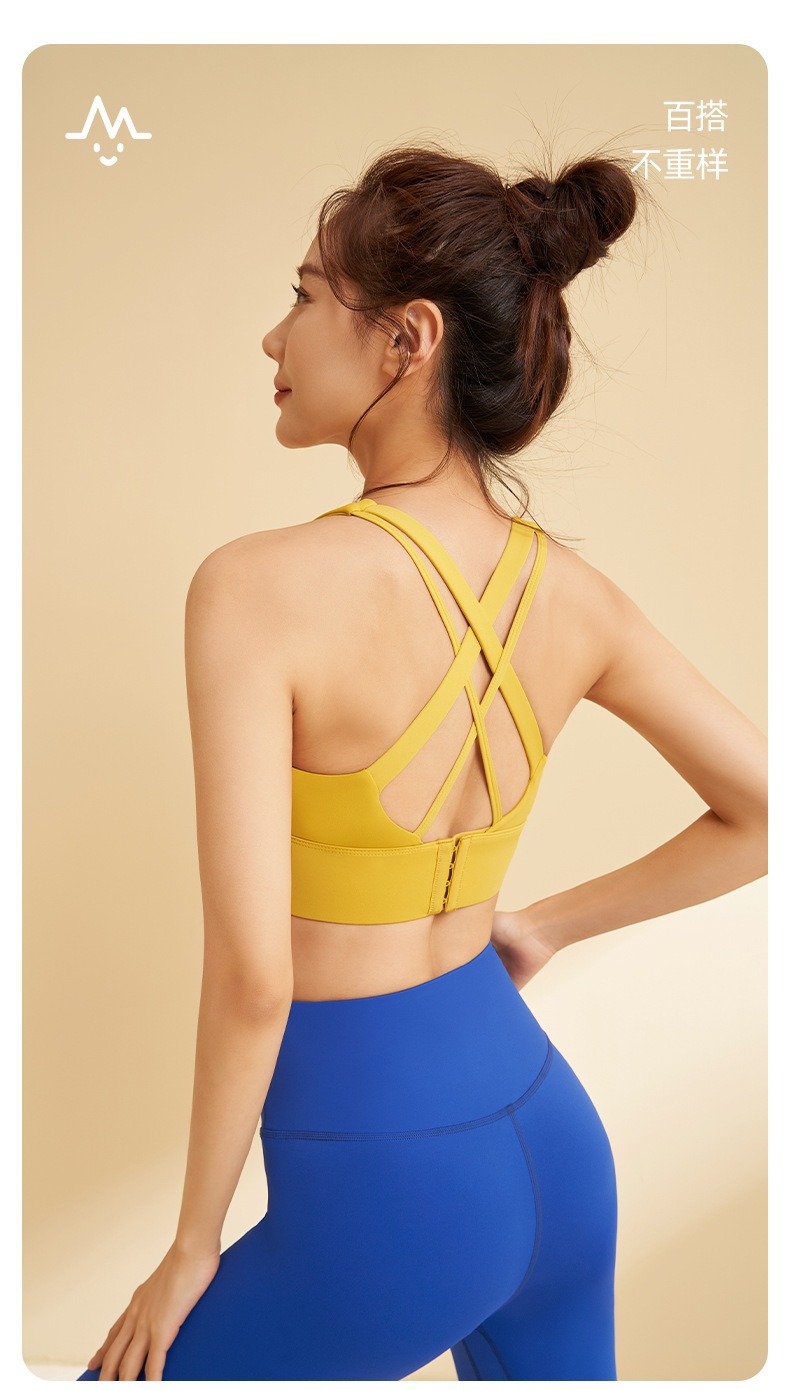 Juyitang 러닝 피트니스 벌거 벗은 느낌 푸시 업 크로스 아름다운 등 요가 조끼 여성 고강도 충격 방지 스포츠 브래지어스토어 가기