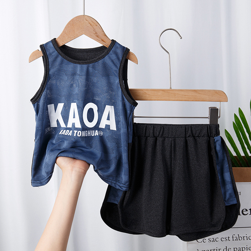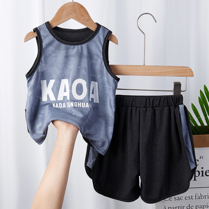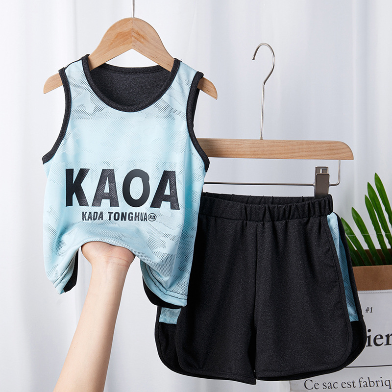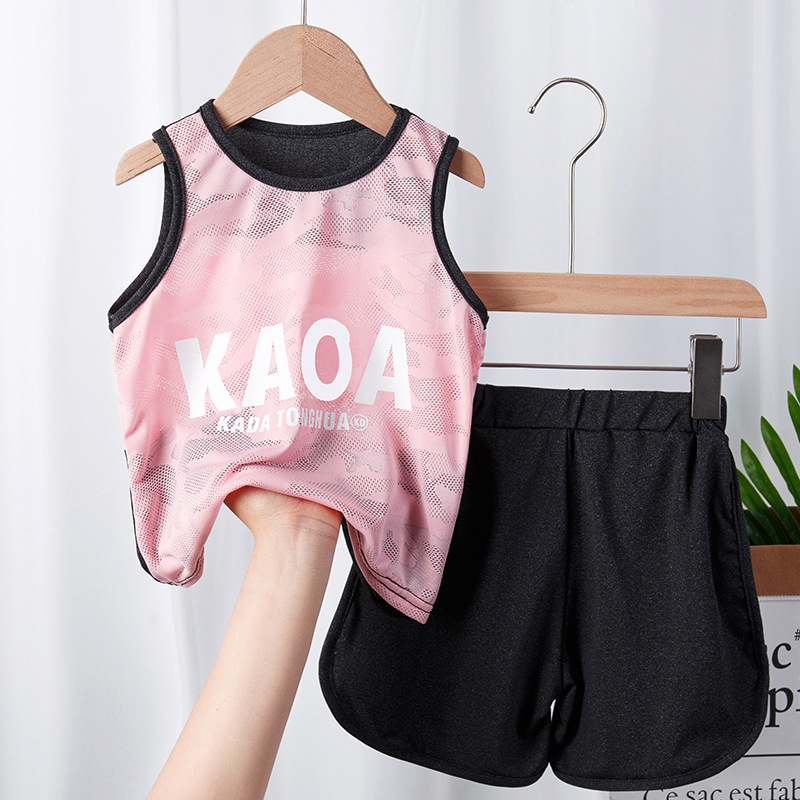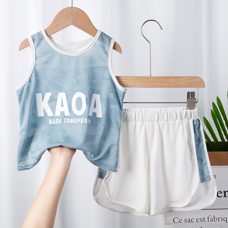 어린이 스포츠 조끼 세트 어린이 의류 여름 얇은 메쉬 농구 의류 훈련 의류 여자 소년 새로운 스타일