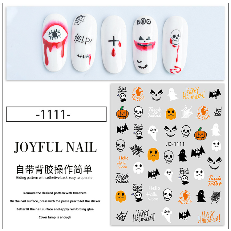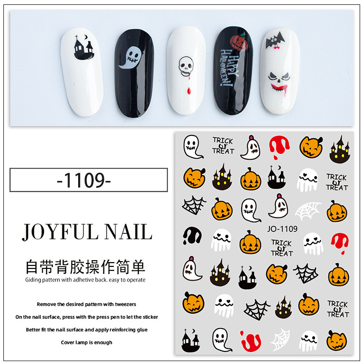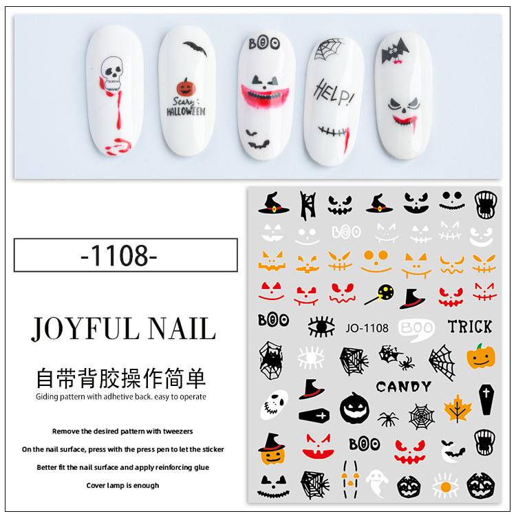 대외 무역 폭발 할로윈 네일 스티커 호박 두개골 방수 네일 스티커 네일 장식 작은 패턴