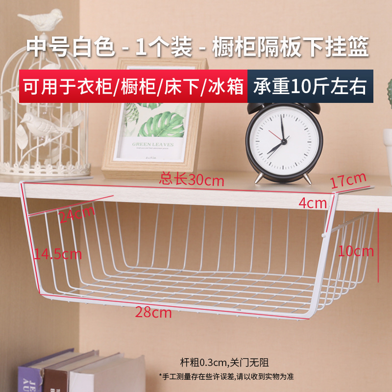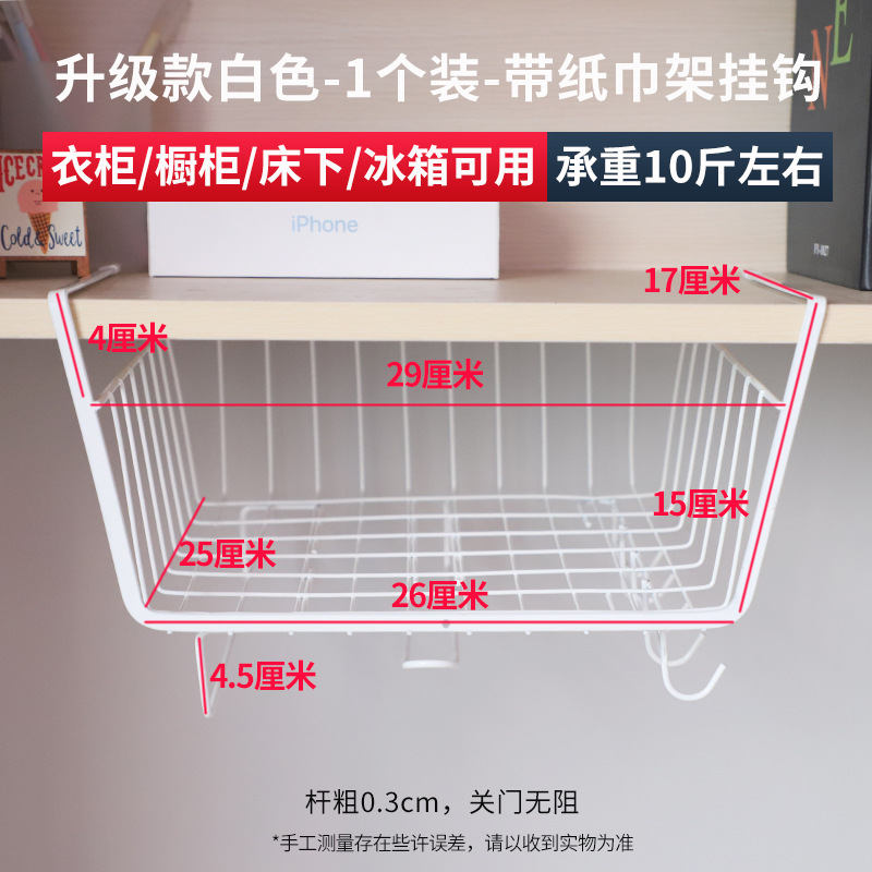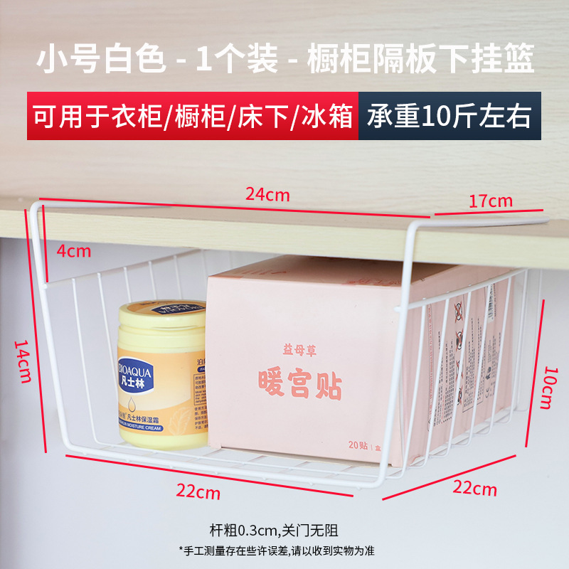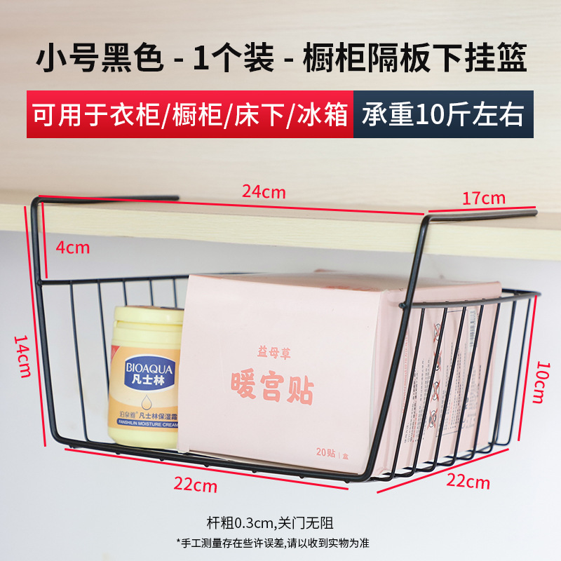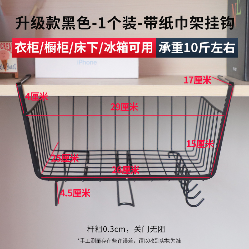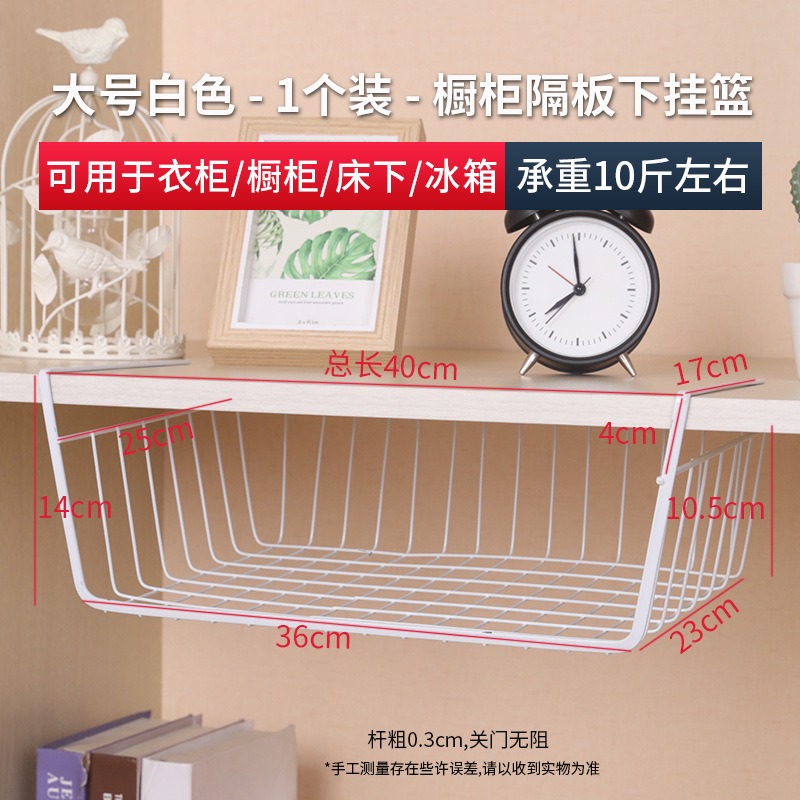 주방 캐비닛 선반 아래 걸이형 바구니 옷장 수납 선반 기숙사 책상 걸이형 선반 무타공 수납 선반