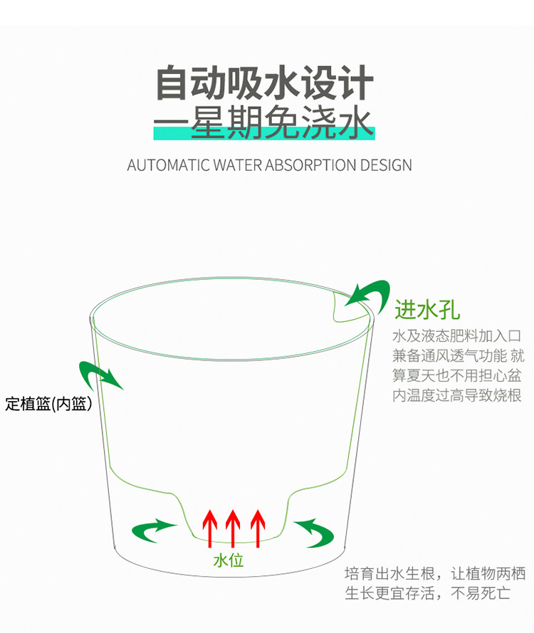 녹색 장미 자동 흡수 화분 간단한 게으른 수경 다육 질 큰 직경 작은 화분 플라스틱 두꺼운 수지