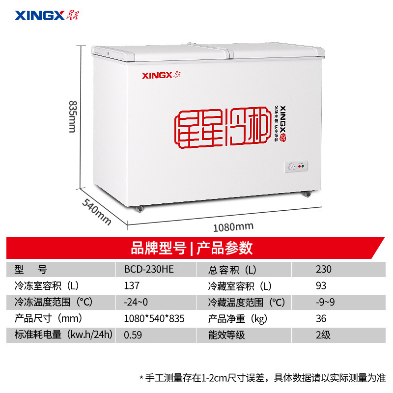 XINGX 스타 이중 온도 230 리터 냉장고 냉장고 가정용 상업용 소형 냉동 신선한 유지 냉동 이중 목적 캐비닛