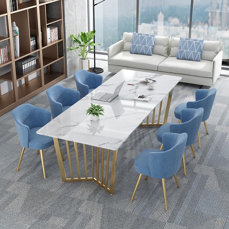 북유럽 대리석 사무실 테이블 및 의자 조합 간단한 직사각형 철 회의 테이블 비즈니스 리셉션 협상 작업대